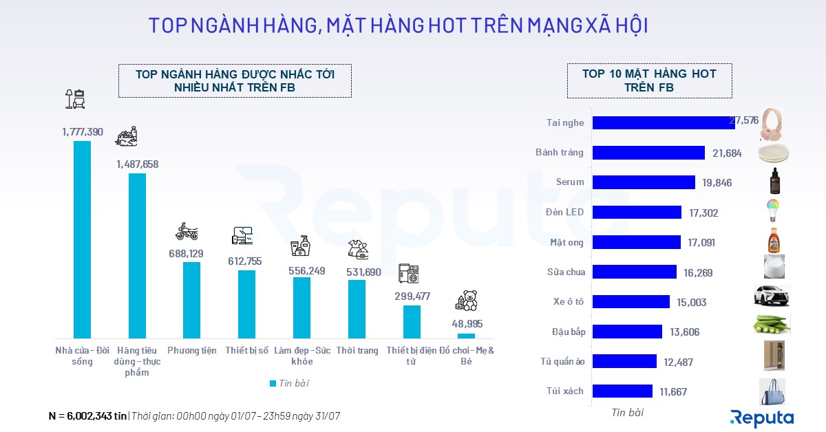 Bảng xếp hạng Top Ngành hàng, mặt hàng 'hot' trên Mạng xã hội