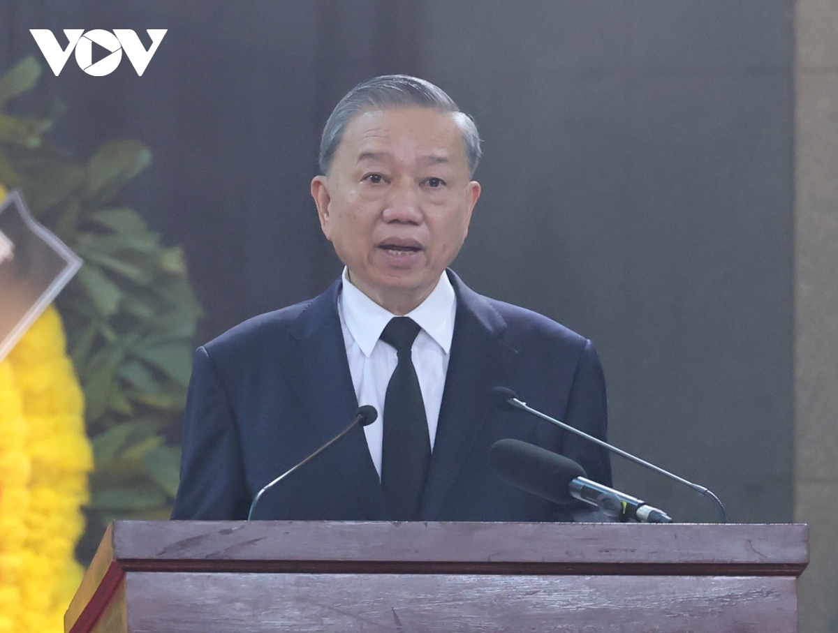 Trong lời điếu đọc tại Lễ truy điệu Tổng Bí thư Nguyễn Phú Trọng, Chủ tịch nước Tô Lâm đã ôn lại cuộc đời hoạt động cách mạng phong phú, bền bỉ của Tổng Bí thư Nguyễn Phú Trọng trong gần 60 năm qua. Trọn cuộc đời, Tổng Bí thư Nguyễn Phú Trọng đã mang hết tinh thần trách nhiệm, nhiệt huyết cách mạng, làm việc đến hơi thở cuối cùng, tận tâm, tận lực, tận hiến cho Đảng, cho nước, cho dân. Trong những di sản Tổng Bí thư Nguyễn Phú Trọng để lại, Chủ tịch nước Tô Lâm đặc biệt nhấn mạnh hệ thống tư tưởng và lý luận quý giá của ông về con đường cách mạng Việt Nam trong thời đại mới.