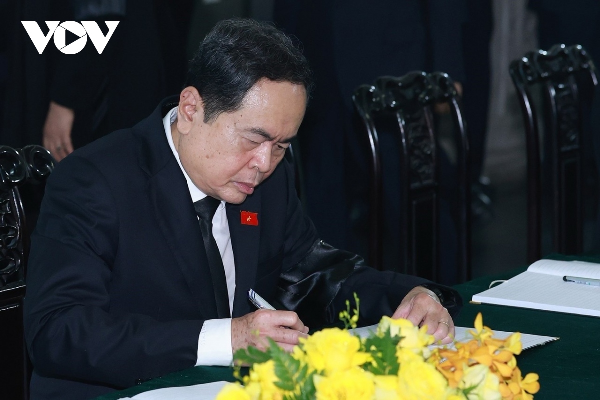 Chủ tịch Quốc hội Trần Thanh Mẫn viết sổ tang tại Lễ viếng Tổng Bí thư Nguyễn Phú Trọng