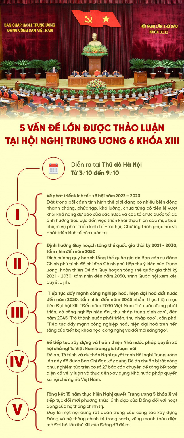 5 vấn đề lớn được thảo luận tại Hội nghị Trung ương 6. Đồ họa VOV