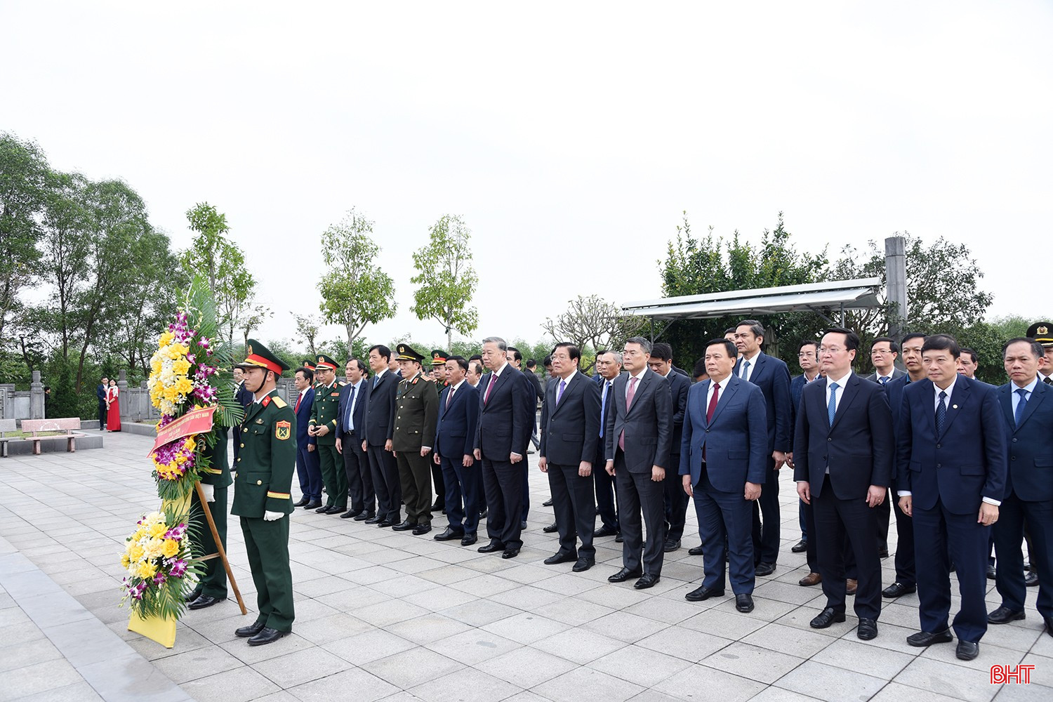 Tổng Bí thư Tô Lâm và đoàn công tác dâng hoa tại khu mộ Tổng Bí thư Hà Huy Tập (xã Cẩm Hưng, huyện Cẩm Xuyên).