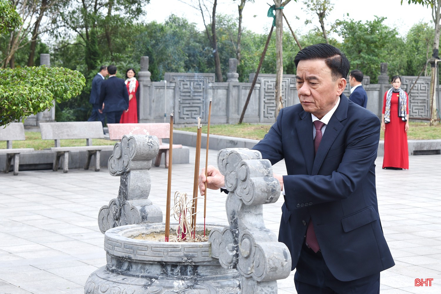Các đồng chí lãnh đạo Trung ương, lãnh đạo tỉnh dâng hương cố Tổng Bí thư Hà Huy Tập.