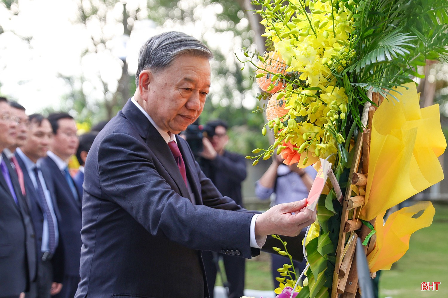 Trước anh linh các anh hùng liệt sĩ, Tổng Bí thư Tô Lâm và các đồng chí trong đoàn đã bày tỏ lòng biết ơn vô hạn, sự tri ân sâu sắc đối với công lao to lớn của các anh hùng liệt sĩ đã hiến trọn tuổi thanh xuân, hi sinh vì độc lập dân tộc, tự do của Tổ quốc, vì hạnh phúc của Nhân dân. Các anh hùng liệt sĩ mãi là tấm gương tiêu biểu cho lòng yêu nước, cống hiến, hi sinh cho lý tưởng độc lập dân tộc và chủ nghĩa xã hội của Đảng, của dân tộc.
