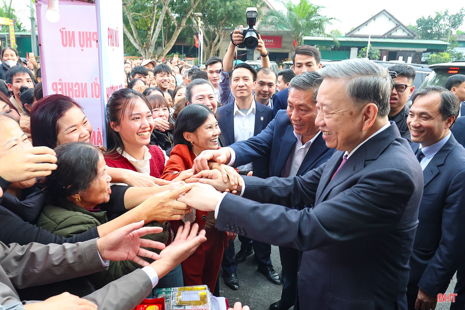 Tổng Bí thư Tô Lâm vui mừng gặp gỡ, trò chuyện cùng bà con nhân dân Hương Sơn.