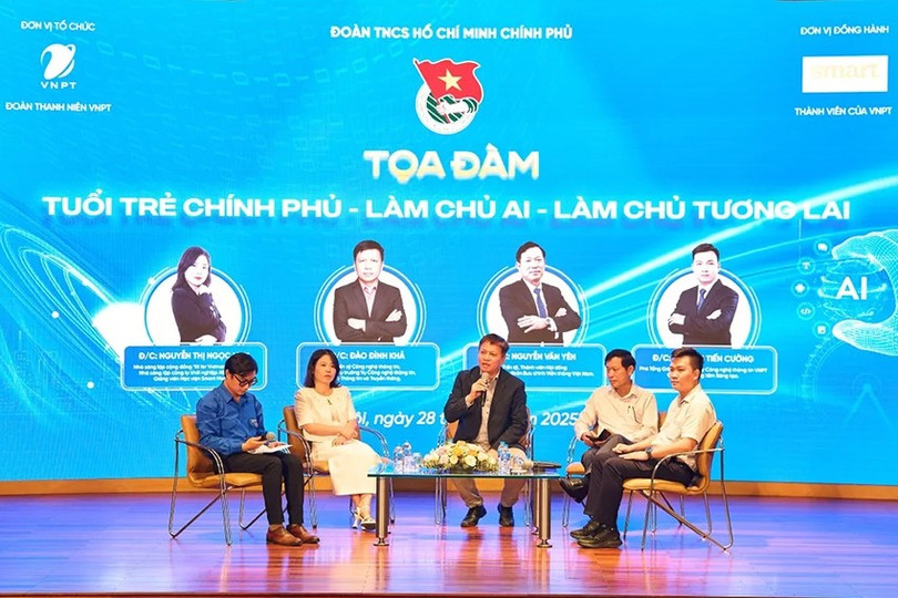 Công ty Cổ phần Truyền thông quảng cáo đa phương tiện SMART Media phối hợp tổ chức toạ đàm "Tuổi trẻ chính phủ - Làm chủ AI - Làm chủ tương lai" tại Hà Nội. Ảnh: Vtv.vn.