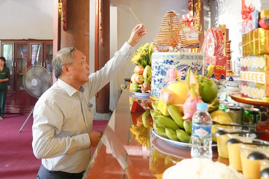 Trưởng ban Tổ chức Tỉnh ủy Võ Hồng Hải dâng hương tưởng niệm.