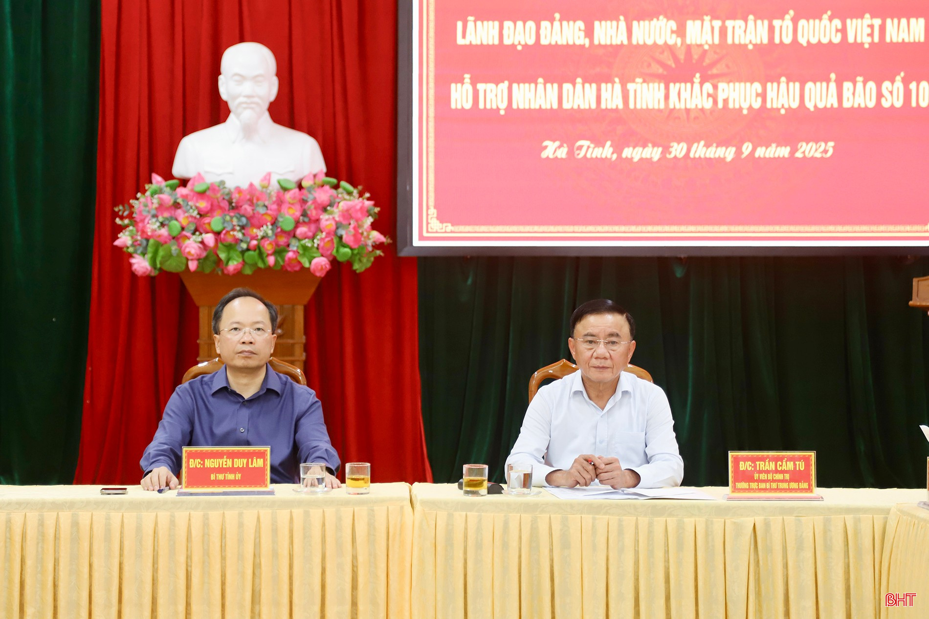 Dịp này, Thường trực Ban Bí thư Trần Cẩm Tú đã trao nguồn hỗ trợ của lãnh đạo Đảng, Nhà nước cho Đảng bộ, chính quyền và Nhân dân tỉnh Hà Tĩnh để khắc phục hậu quả bão số 10.