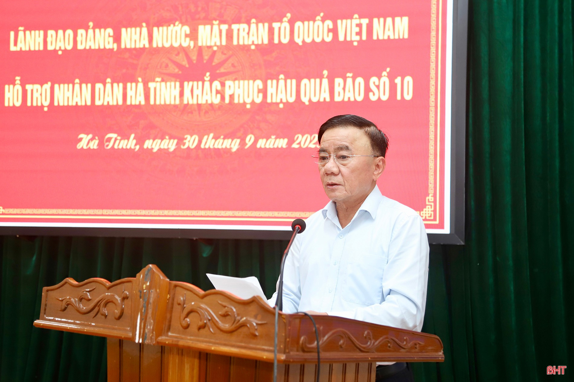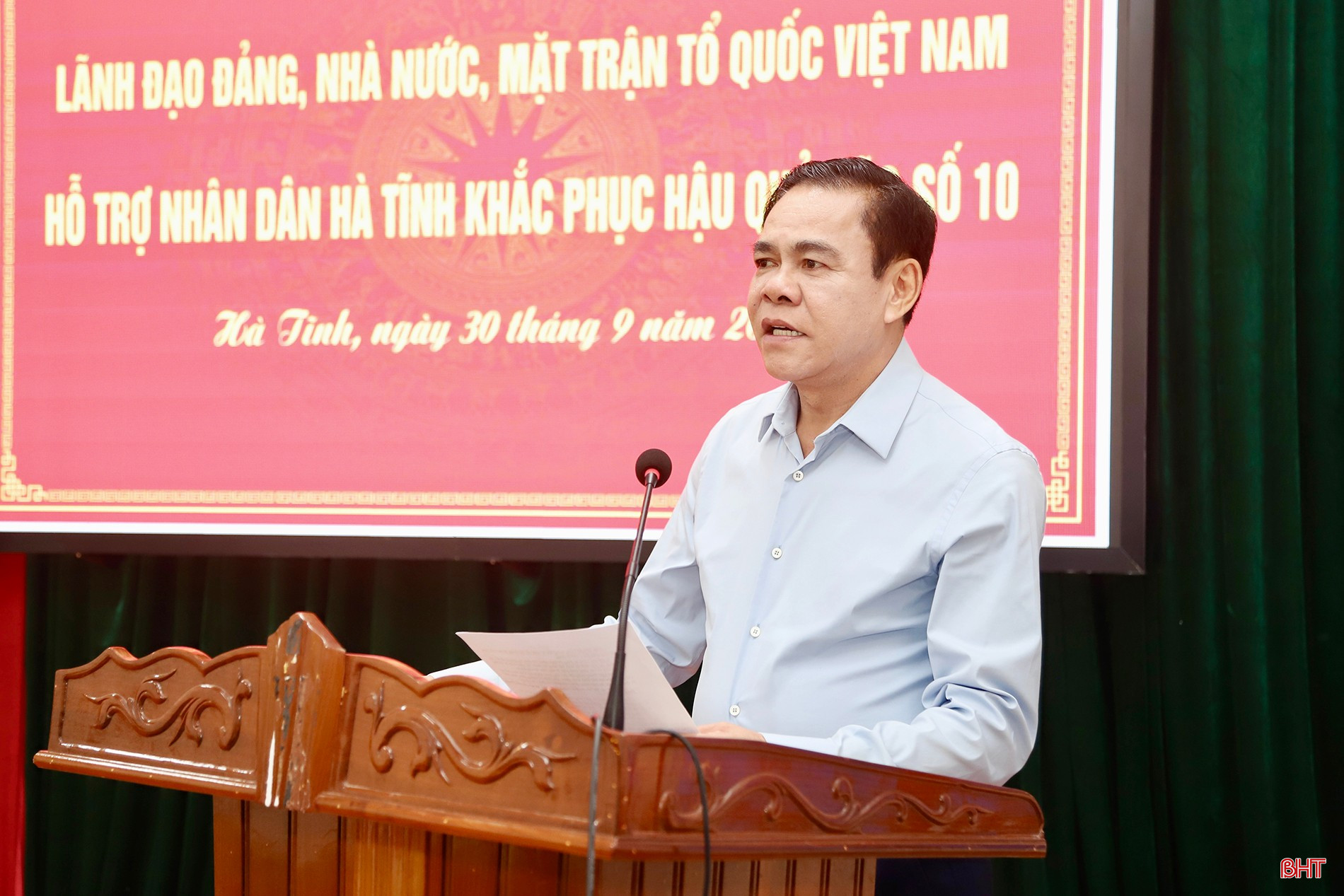 Thường trực Ban Bí thư Trần Cẩm Tú trao nguồn hỗ trợ của lãnh đạo Đảng, Nhà nước cho tỉnh Hà Tĩnh để khắc phục hậu quả bão số 10.