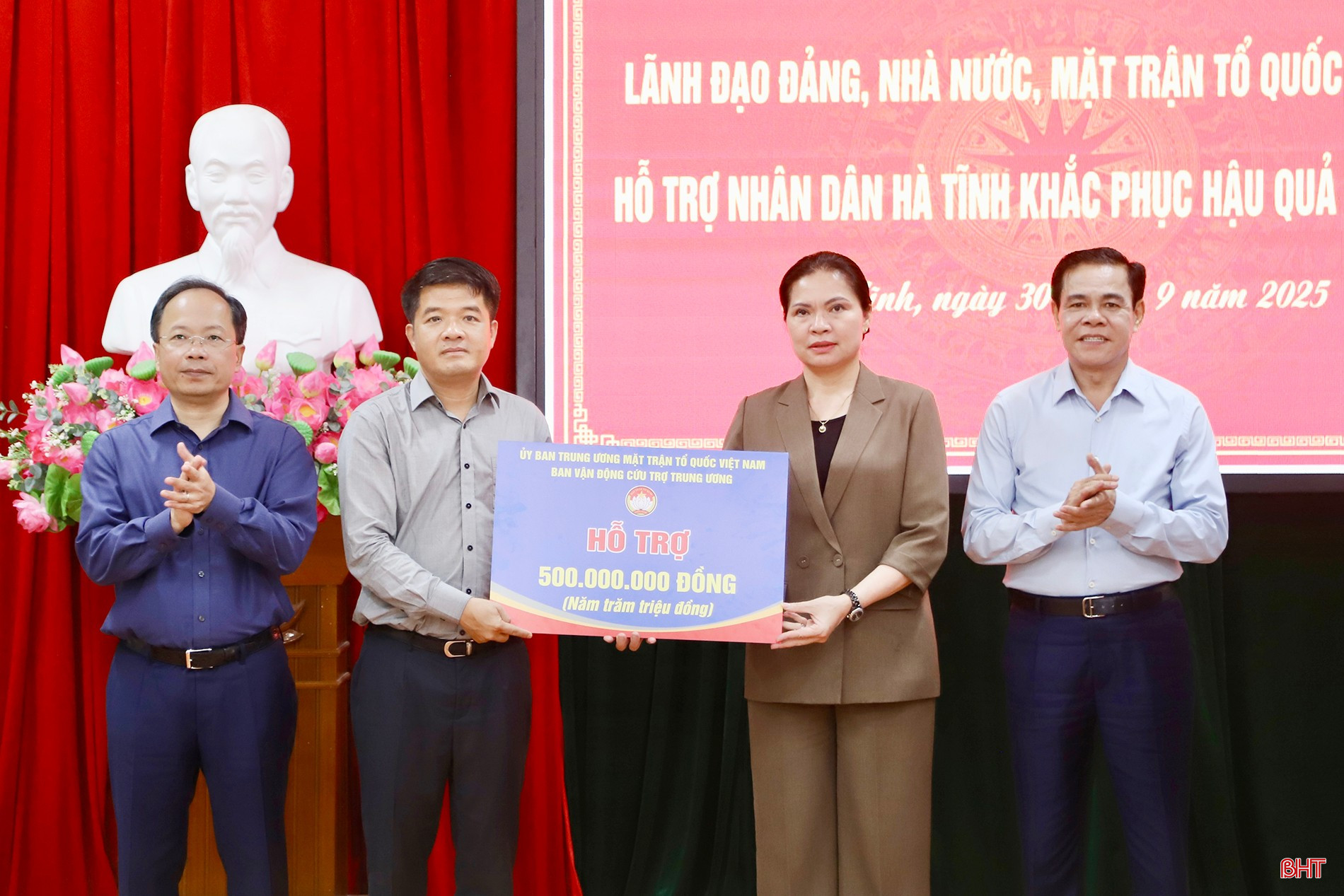 Ủy ban Trung ương MTTQ Việt Nam cũng trao 500 triệu đồng của Ban vận động cứu trợ Trung ương hỗ trợ tỉnh Hà Tĩnh; các đơn vị tài trợ trao hỗ trợ tỉnh 7,7 tỷ đồng khắc phục hậu quả bão số 10.