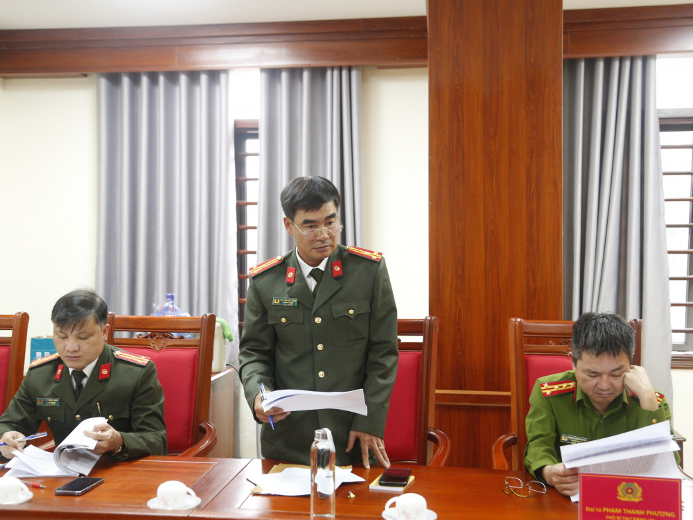 Tham dự có đồng chí các đồng chí trong Ban Giám đốc Công an tỉnh và các thành viên, tổ giúp việc Ban Chỉ đạo. Đại tá Nguyễn Hồng Phong, Giám đốc Công an tỉnh chủ trì