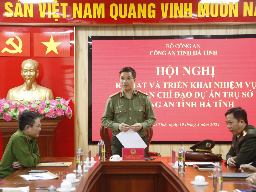 Phát biểu tại hội nghị, Đại tá Nguyễn Hồng Phong, Giám đốc Công an tỉnh khẳng định của việc thành lập và triển khai công tác của Ban Chỉ đạo (BCĐ), Tổ giúp việc Ban Chỉ đạo triên khai thực hiện Dự án trụ sở làm việc Công an tỉnh Hà Tĩnh có vài trò ý nghĩa quan trọng, góp phần thực hiện các nhiệm vụ của dự án đạt hiệu quả, đảm bảo tiến độ và chất lượng. Đồng chí Giám đốc Công an tỉnh đề nghị mỗi các nhân, mỗi thành viên trong Ban chỉ đạo và tổ giúp việc Ban chỉ đạo cần phát huy hết tinh thần trách nhiệm, năng lực trí tuệ trong thực hiện chức trách, nhiệm vụ được phân công; giải quyết công việc theo chức năng, nhiệm vụ quyền hạn, đảm bảo đúng quy định pháp luật của Nhà nước; thường xuyên đơn đốc, kiểm tra, giám sát các đơn vị, địa phương quán triệt và triển khai có hiệu quả các nội dung chỉ đạo, các yêu cầu nhiệm vụ để ra; duy trì tốt chế độ thông tin báo cáo, kịp thời tháo gỡ những khó khăn vướng mắc nếu có nhằm đảm bảo cho dự án triển khai đúng tiến độ, đảm bảo chất lượng theo mục tiêu, yêu cầu đã đề ra.