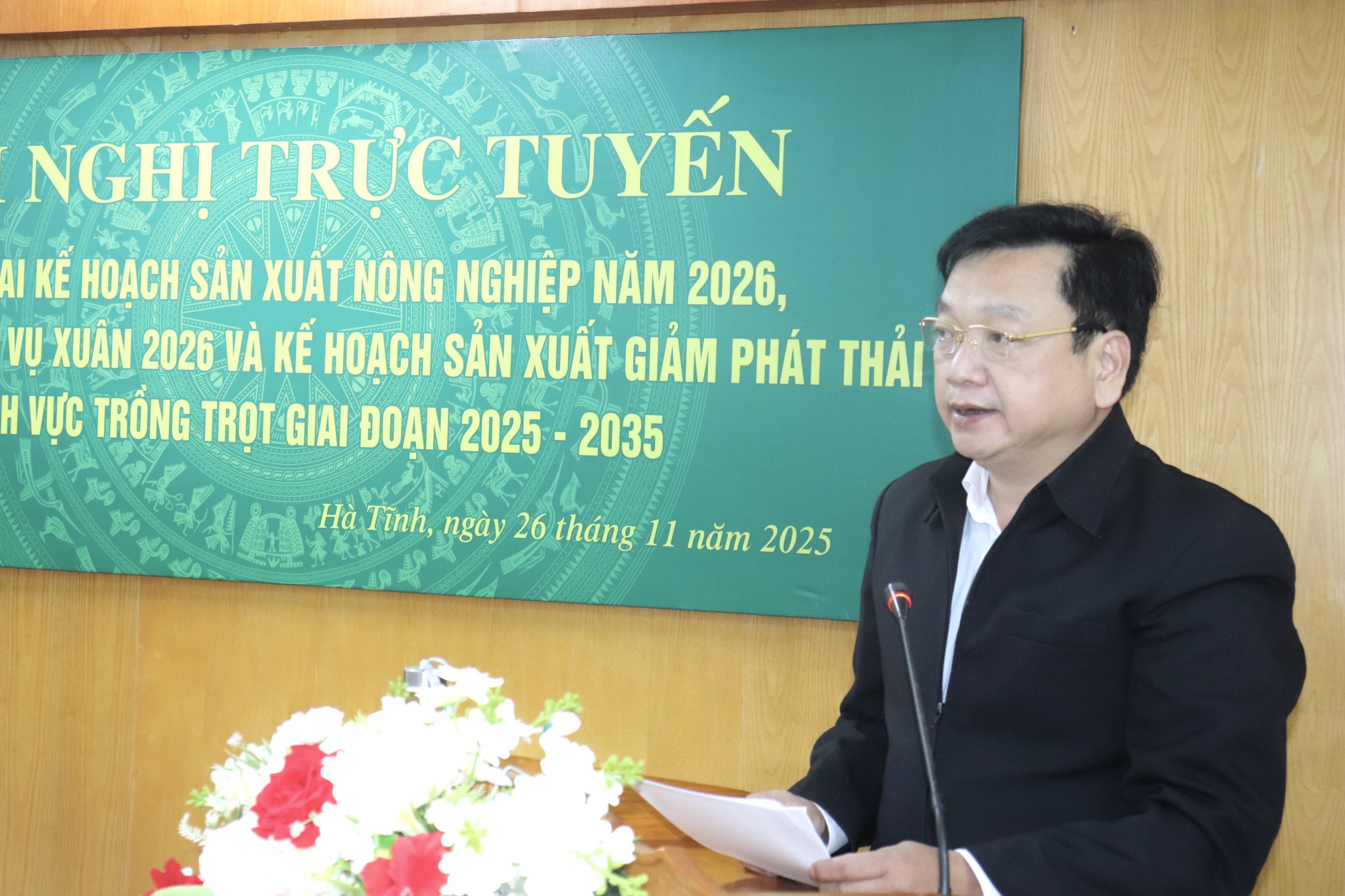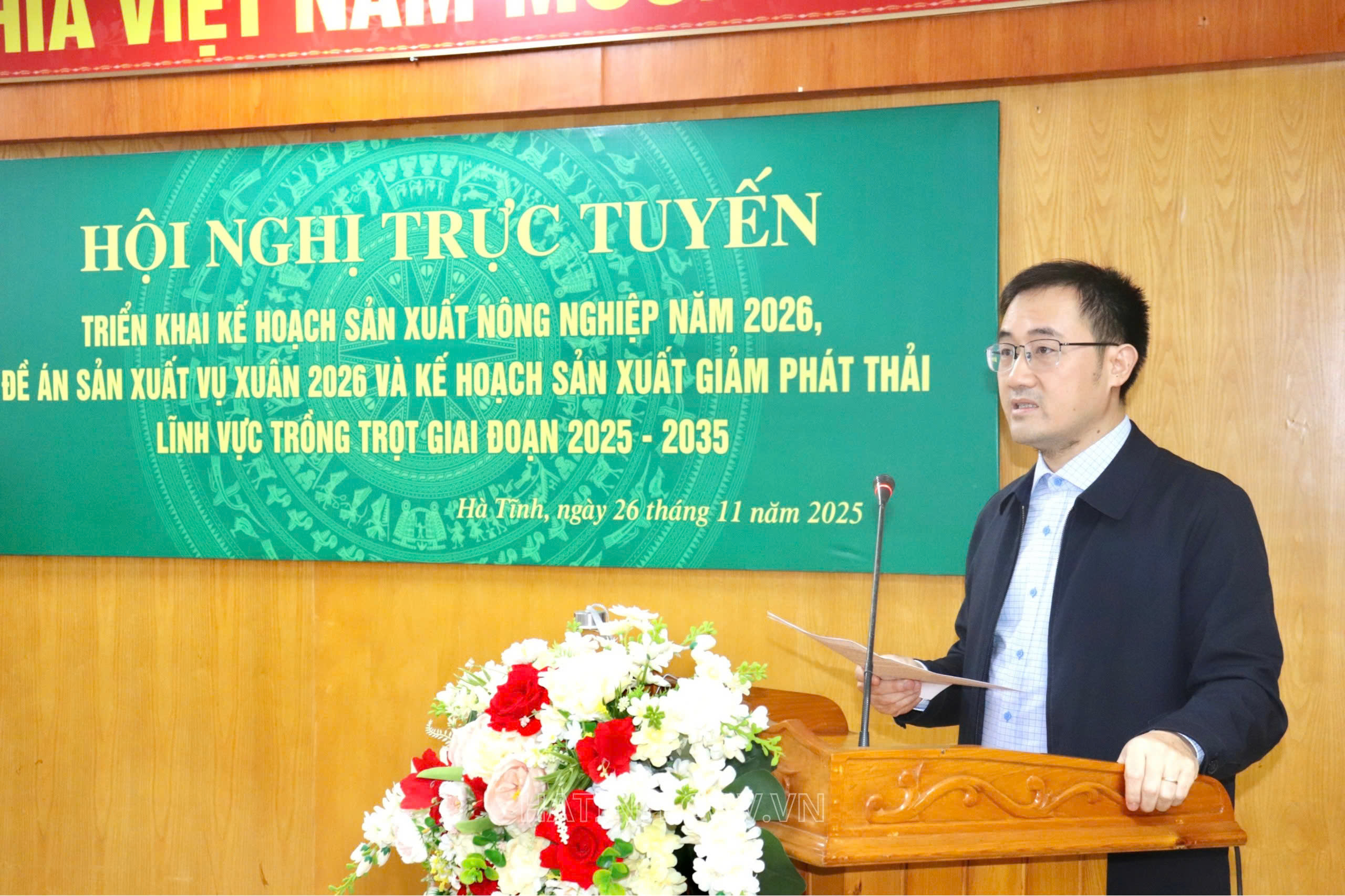 Song song với kế hoạch sản xuất vụ Xuân, hội nghị nghe báo cáo Kế hoạch hành động thực hiện Đề án sản xuất giảm phát thải lĩnh vực trồng trọt giai đoạn 2025–2035, tầm nhìn 2050. Theo quyết định của UBND tỉnh, Hà Tĩnh sẽ triển khai đồng bộ các nhóm nhiệm vụ: chuyển đổi cơ cấu cây trồng linh hoạt theo sinh thái vùng; áp dụng gói kỹ thuật giảm phát thải như tưới ngập – khô xen kẽ, 1 phải 5 giảm, quản lý dinh dưỡng hợp lý, sử dụng phân hữu cơ – vi sinh, giảm thuốc bảo vệ thực vật hóa học; thúc đẩy nông nghiệp số qua cảm biến thông minh, phân tích đất, quản lý nước tưới; tăng cường mô hình phát thải thấp cho các cây chủ lực như lúa, cam, bưởi Phúc Trạch, chè, dứa.