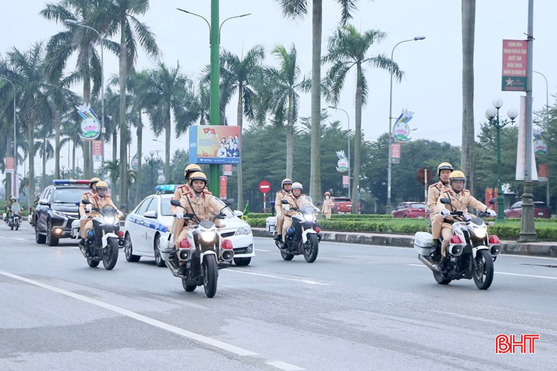 Công an tỉnh Hà Tĩnh diễu hành biểu dương lực lượng.