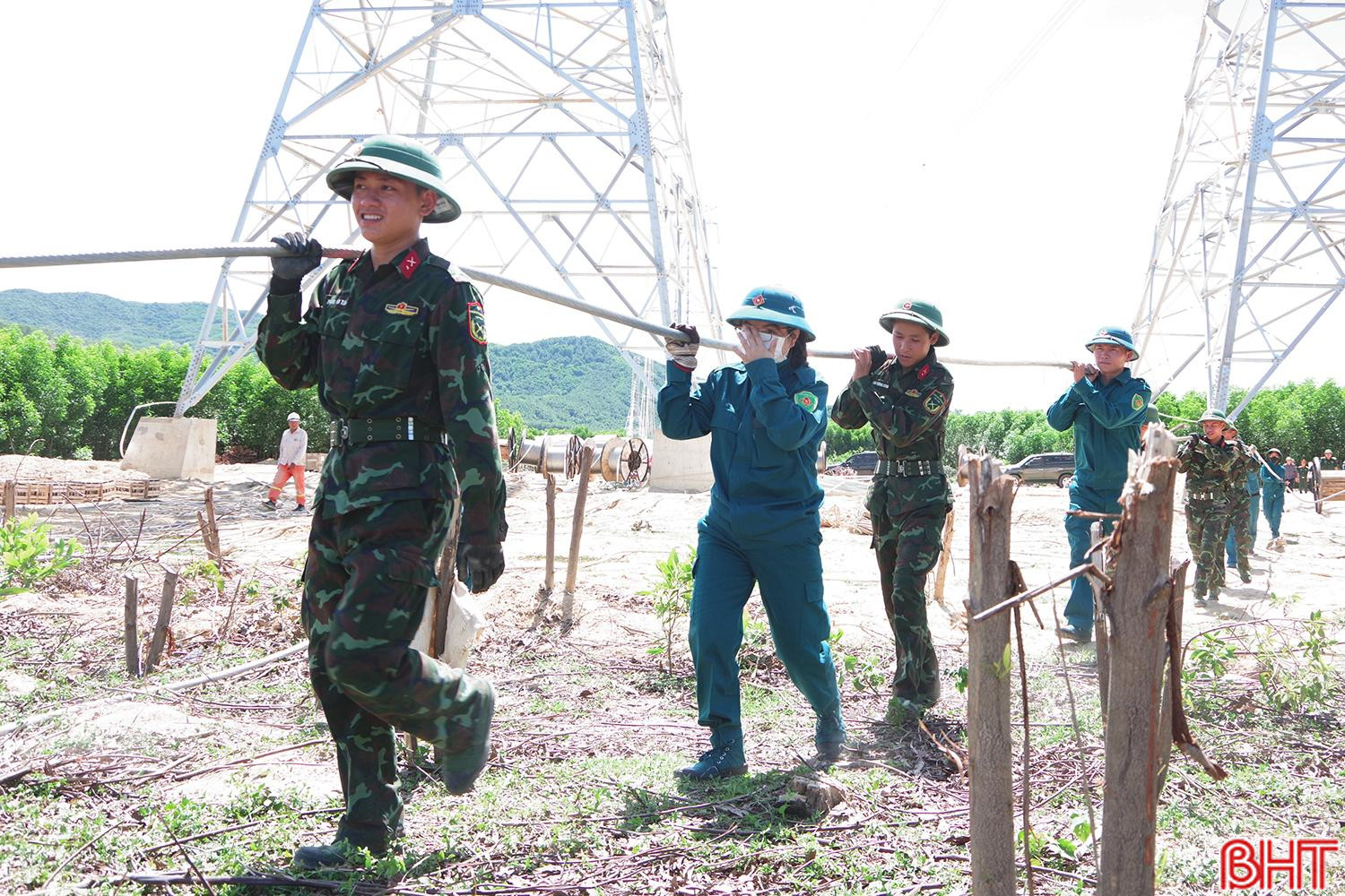 Mặc dù thời tiết nắng nóng gay gắt nhưng cán bộ, chiến sĩ LLVT tỉnh nhà không quản ngại khó khăn, vận chuyển trang thiết bị, phát cây thông tuyến, tổ chức lực lượng kéo dây, tạo điều kiện thuận lợi cho cán bộ, kỹ sư, công nhân lao động đang thi công tại công trường thực hiện tốt việc lắp, dựng cột và kéo dây đảm bảo đúng tiến độ, kế hoạch được giao.