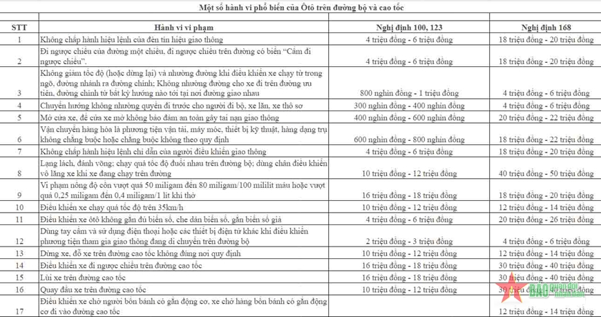 Tại nghị định này, nhiều hành vi vi phạm có mức xử phạt vi phạm hành chính tăng rất cao. Đáng chú ý, cơ quan soạn thảo đã tăng rất cao mức phạt đối với các hành vi, nhóm hành vi là nguyên nhân chính dẫn đến nhiều vụ tai nạn; đặc biệt nếu xảy ra trên đường cao tốc.