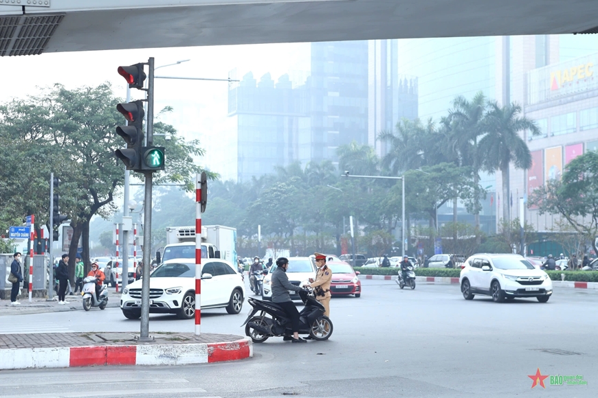Cảnh sát giao thông xử lý trường hợp vi phạm an toàn giao thông.