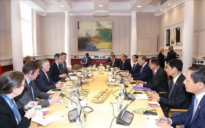 Tổng Bí thư, Chủ tịch nước Tô Lâm trong cuộc gặp Thủ tướng Ireland Simon Harris tại thủ đô Dublin, ngày 3/10/2024. Ảnh: Trí Dũng/TTXVN1. Trong khuôn khổ chuyến thăm