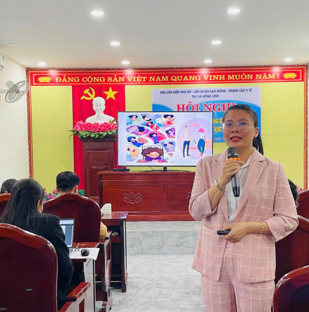 Đồng chí Lê Thị Hồng Hạnh, Trưởng phòng Tư pháp truyền truyền về Bình đẳng giới, vai trò của phụ nữ trong các lĩnh vực đời sống gia đình, xã hội.