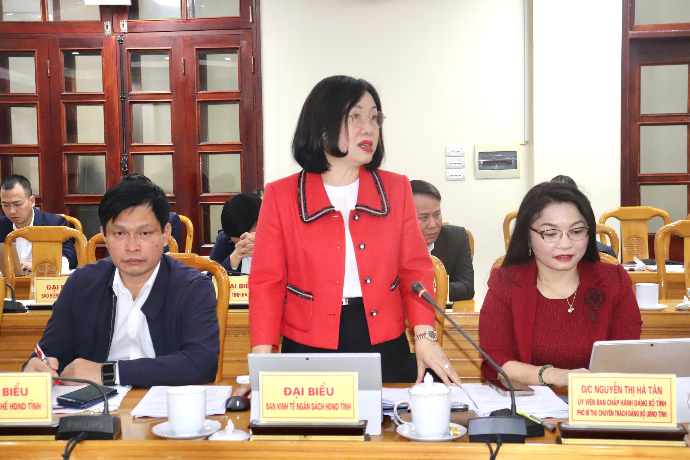 Phó Chủ tịch UBND tỉnh Nguyễn Thị Nguyệt trao đổi tại cuộc họp