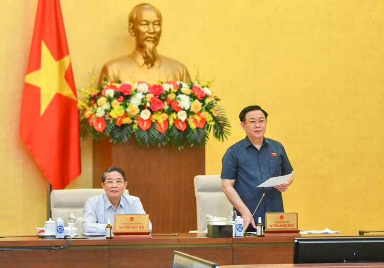 Chủ tịch Quốc hội Vương Đình Huệ phát biểu tại phiên họp. Ảnh: TL.