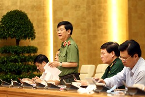 Thứ trưởng Bộ Công an Nguyễn Văn Sơn phát biểu ý kiến. Ảnh: VGP/Đình Nam