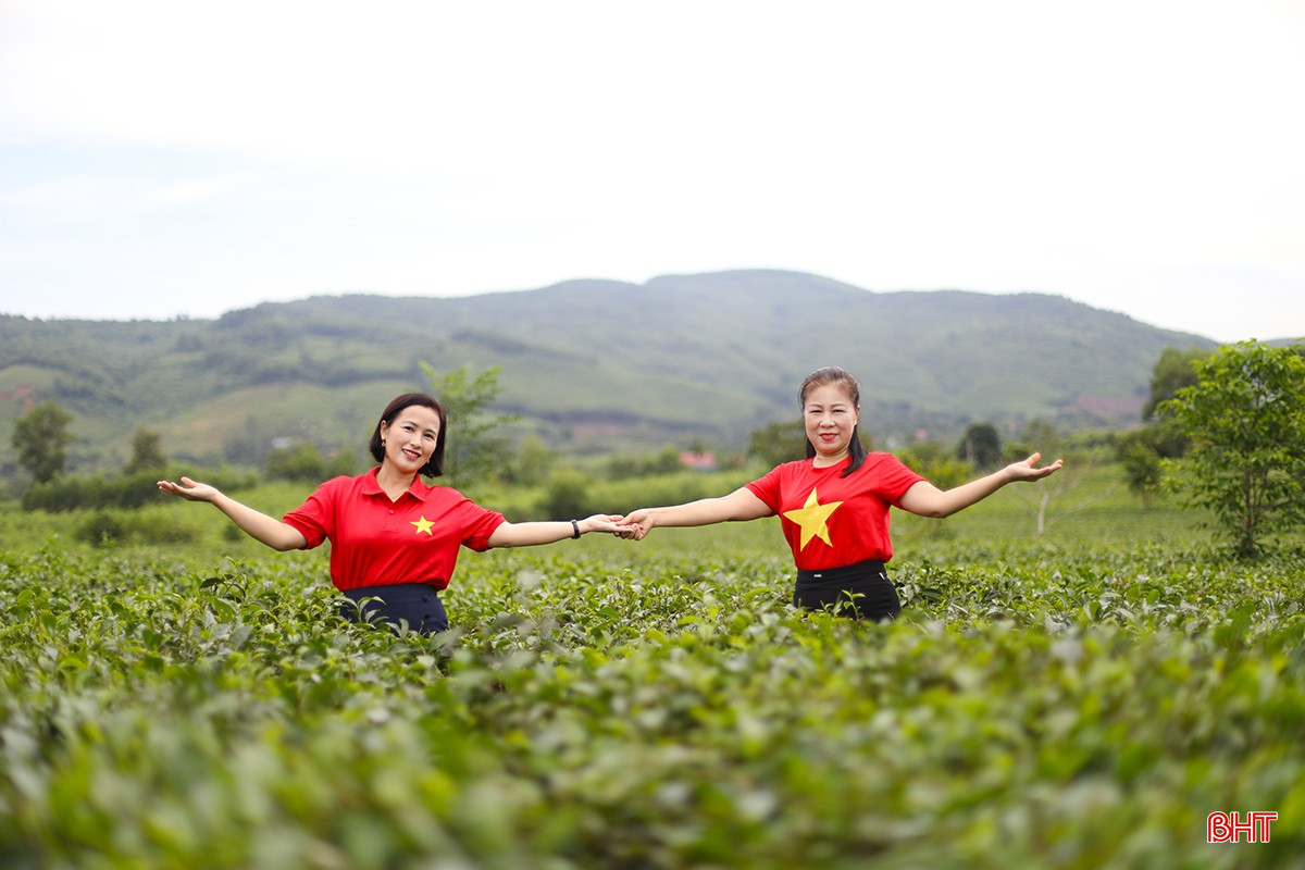 Ngay với cả người dân địa phương, đồi chè cũng là điểm đến hấp dẫn. Trong ảnh: Dịp lễ 2/9, Công đoàn Trường Mầm non Kỳ Giang (huyện Kỳ Anh) đã tổ chức buổi trải nghiệm cho cán bộ, nhân viên tại đồi chè Nam Sơn.