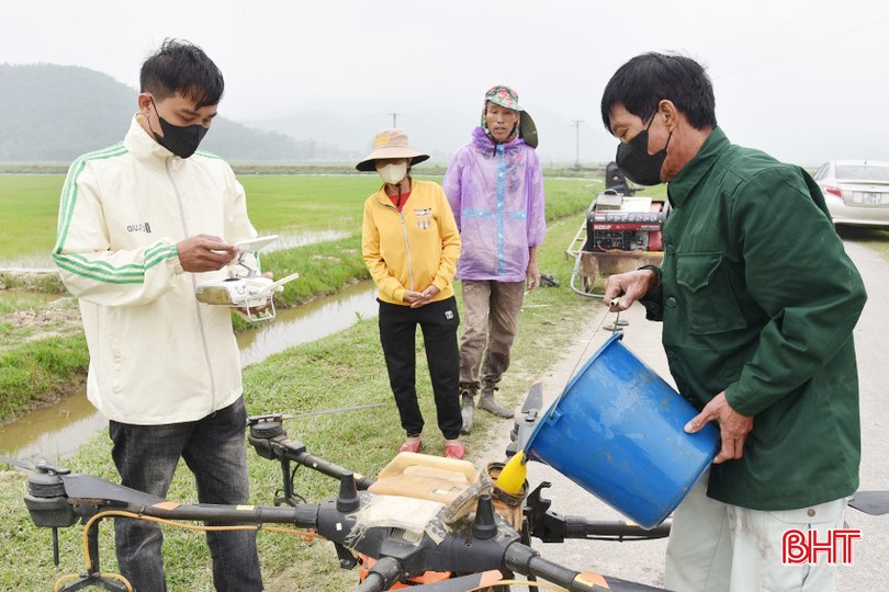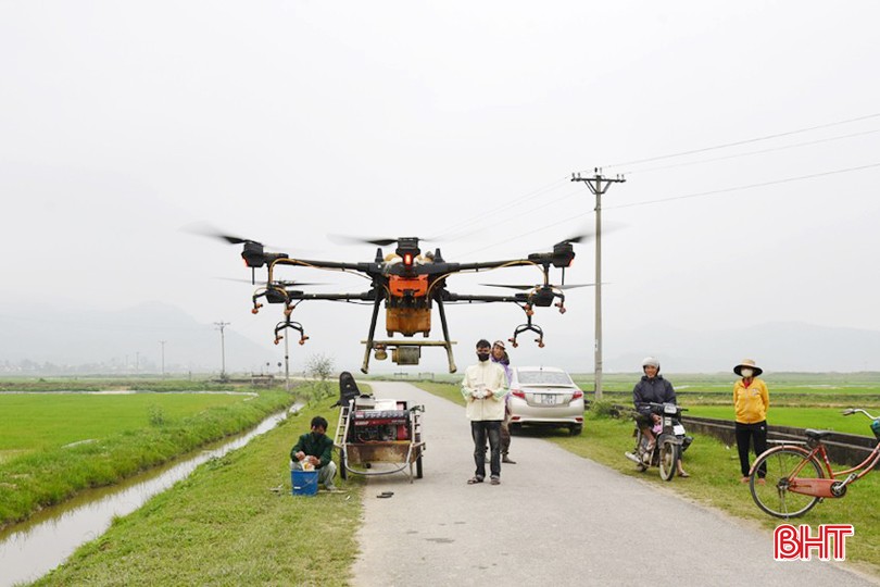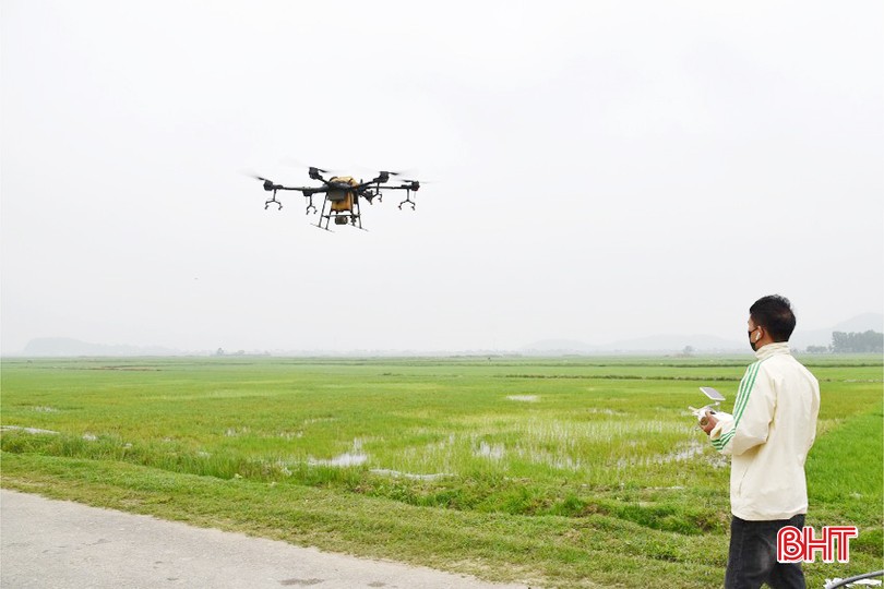 Nguyên nhân bà con nông dân Tân Lộc được nhàn nhã như vậy là trên địa bàn xã đã có dịch vụ phun thuốc trừ sâu, diệt cỏ thuê... được thực hiện bằng mô hình máy bay không người lái, vừa nhanh vừa kinh tế. Và đây là địa phương đầu tiên của huyện Lộc Hà sử dụng máy bay không người lái phun thuốc bảo vệ thực vật đại trà cho đồng ruộng.