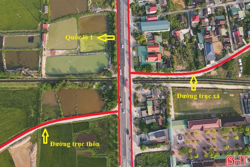 Nút giao lệch ở ngã tư Km 489+300 quốc lộ 1 với tuyến đường trục xã và trục thôn ở thôn Làng Lau, xã Vượng Lộc, huyện Can Lộc.