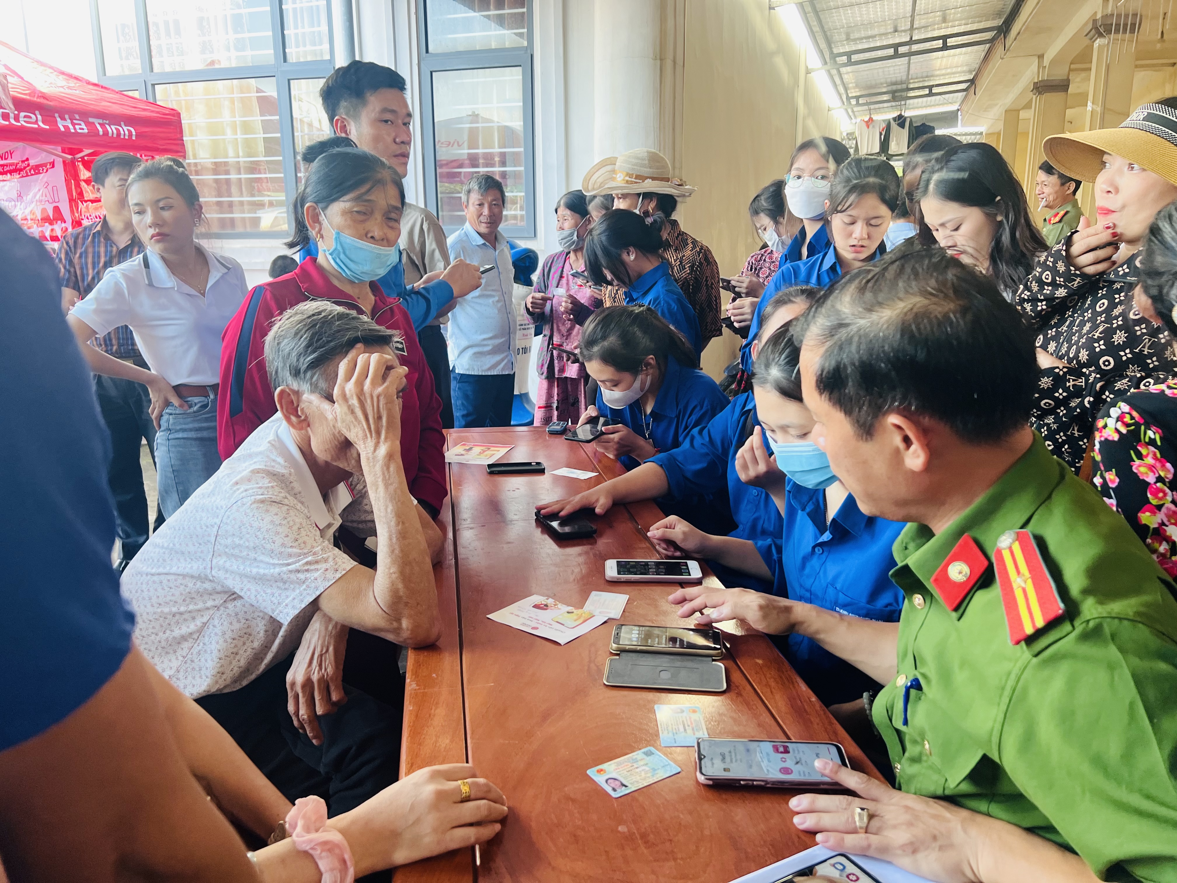 Công an xã Thạch Hải hướng dẫn người dân cài đặt tài khoản định danh điện tử.