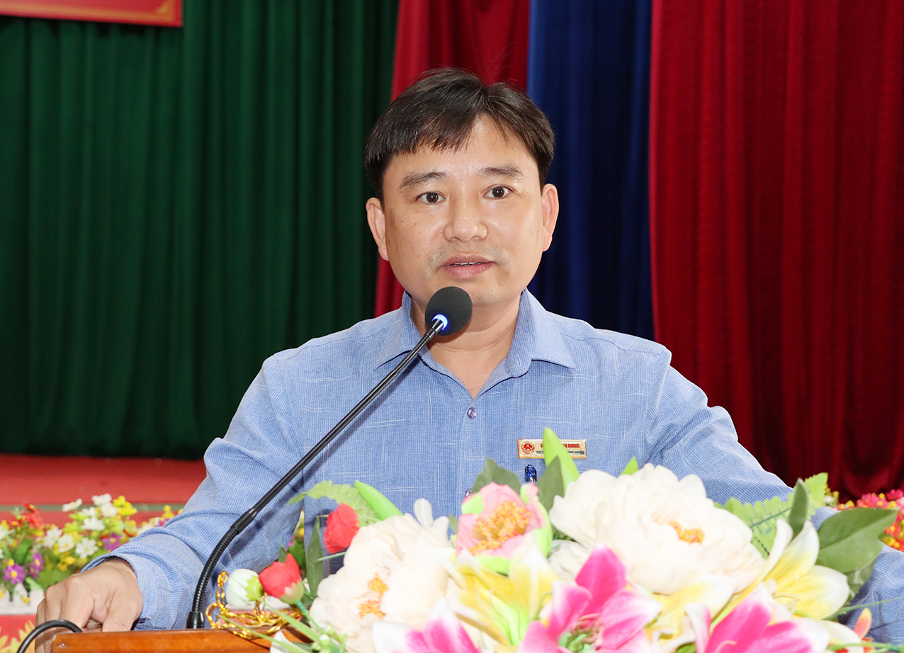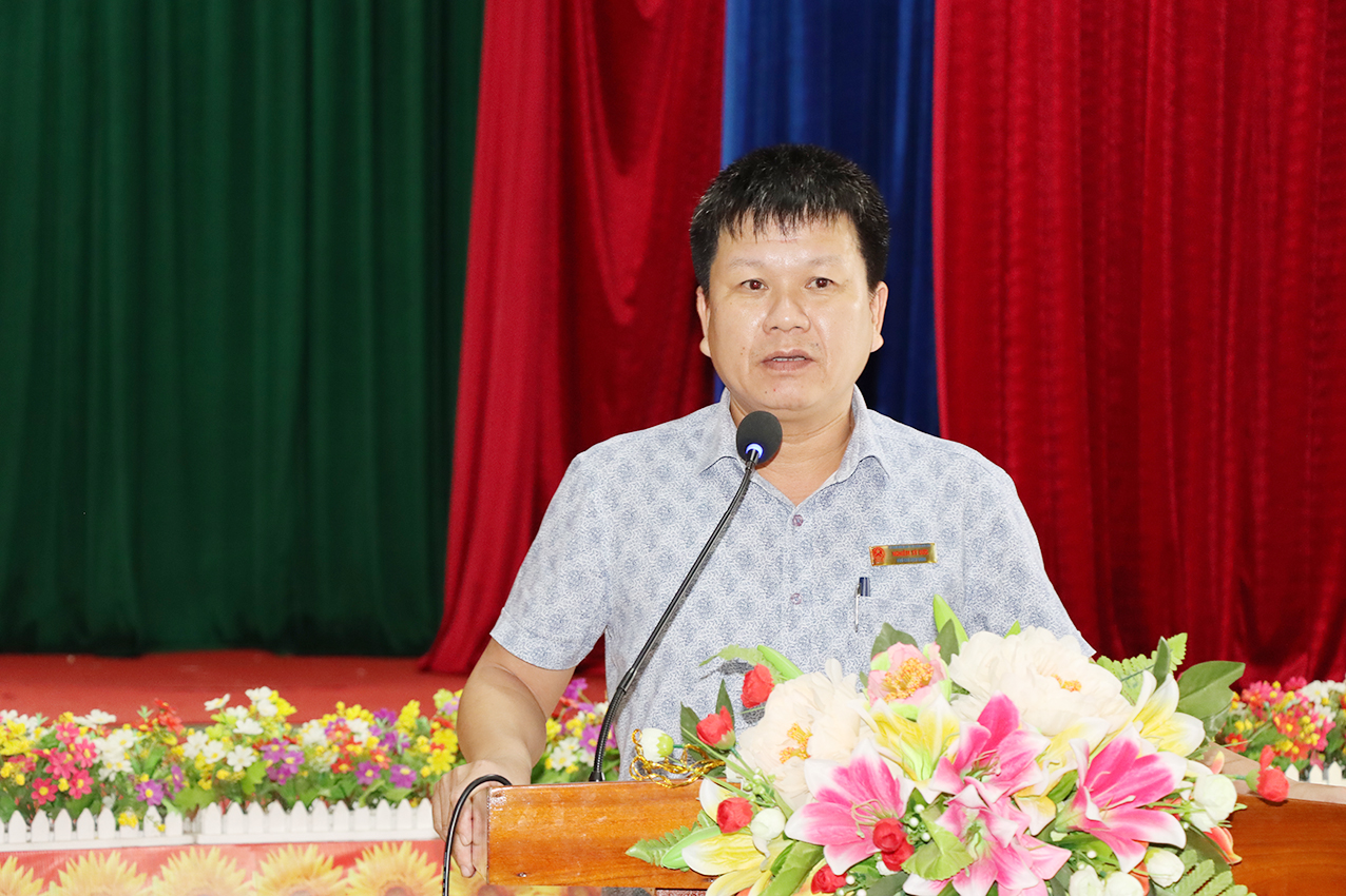 Phó Chủ tịch UBND huyện Hoàng Xuân Hùng phát biểu tại Lễ ra mắt Tổ chuyển đổi số cộng đồng thị trấn Đức Thọ.