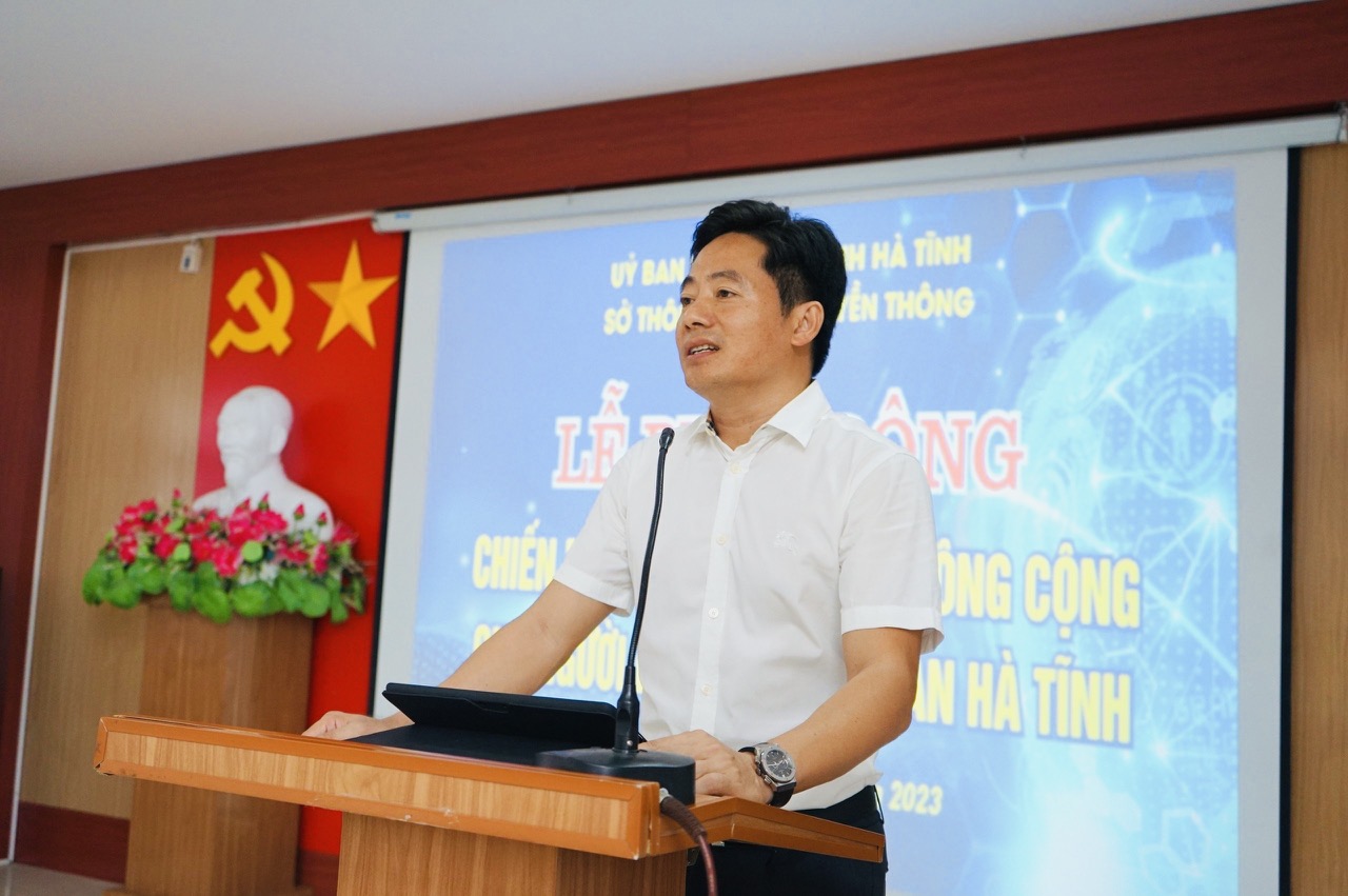 Ông Dương Văn Tuấn - Phó Giám đốc Sở Thông tin và Truyền thông Hà Tĩnh phát biểu tại buổi Lễ