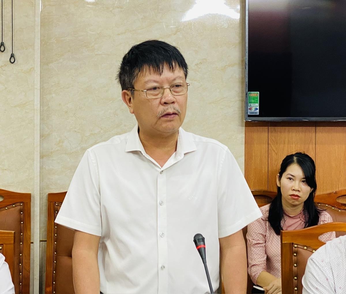 Đồng chí Đậu Tùng Lâm - Giám đốc Sở Thông tin và Truyền thông Hà Tĩnh phát biểu tại cuộc làm việc