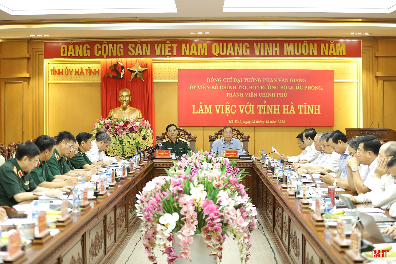 Đoàn công tác Chính phủ do Đại tướng Phan Văn Giang - Ủy viên Bộ Chính trị, Bộ trưởng Bộ Quốc phòng, thành viên Chính phủ làm trưởng đoàn làm việc với lãnh đạo Hà Tĩ