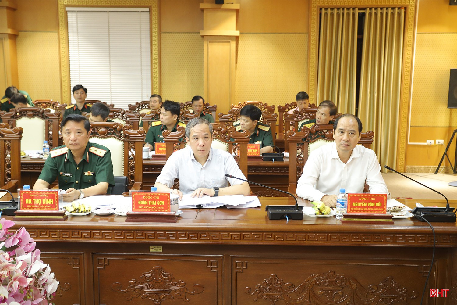 Bí thư Tỉnh ủy Hoàng Trung Dũng cảm ơn Bộ trưởng Bộ Quốc phòng, đoàn công tác và Bộ Tư lệnh Quân khu 4 đã thường xuyên quan tâm giúp đỡ tỉnh, nhất là trong công tác đảm bảo quốc phòng, an ninh; giữ gìn trật tự, an toàn xã hội; phòng, chống, khắc phục hậu quả thiên tai, tìm kiếm cứu nạn; hỗ trợ xây dựng nông thôn mới, tham gia các hoạt động vì cộng đồng, đảm bảo an sinh xã hội...