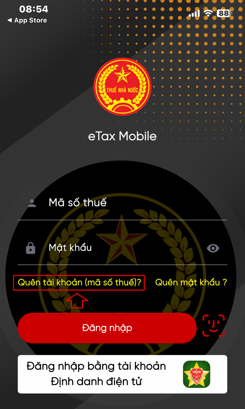 Bước 4: Nhấn vào "Quên tài khoản (mã số thuế)?".