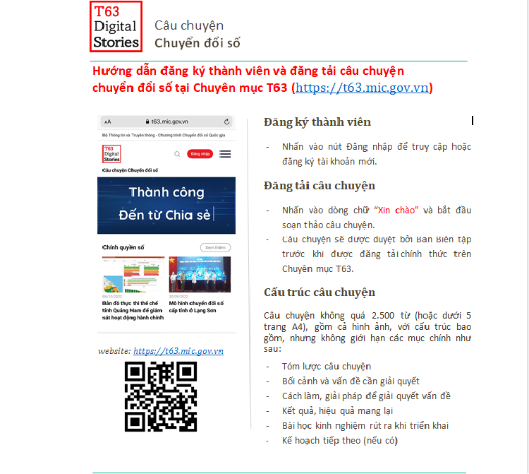 Hướng dẫn đăng ký thành viên và đăng tải câu chuyện chuyển đổi số tại Chuyên mục T63 ( http://t63.mic.gov.vn)