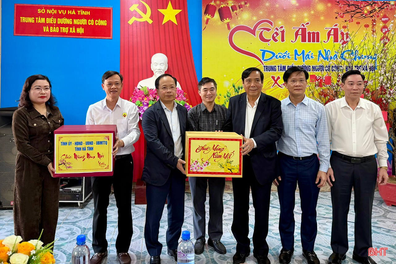 Bí thư Tỉnh ủy Nguyễn Duy Lâm, Chủ tịch Hội Người cao tuổi Việt Nam Nguyễn Thanh Bình, Phó Chủ tịch UBND tỉnh Nguyễn Thị Nguyệt cùng đại diện một số doanh nghiệp, nhà hảo tâm đã đến thăm, tặng quà Tết tại Trung tâm Điều dưỡng người có công và Bảo trợ xã hội Hà Tĩnh.