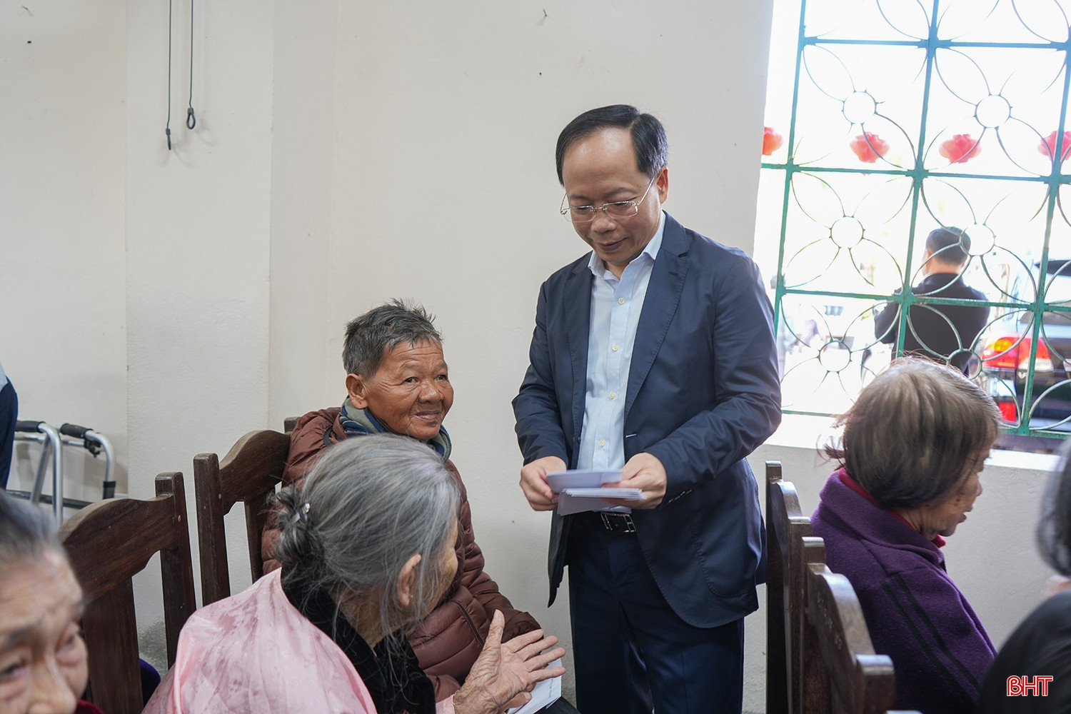 Chủ tịch Hội Người cao tuổi Việt Nam và Bí thư Tỉnh ủy Hà Tĩnh trao quà Tết cho bệnh nhân nặng, đối tượng bảo trợ xã hội