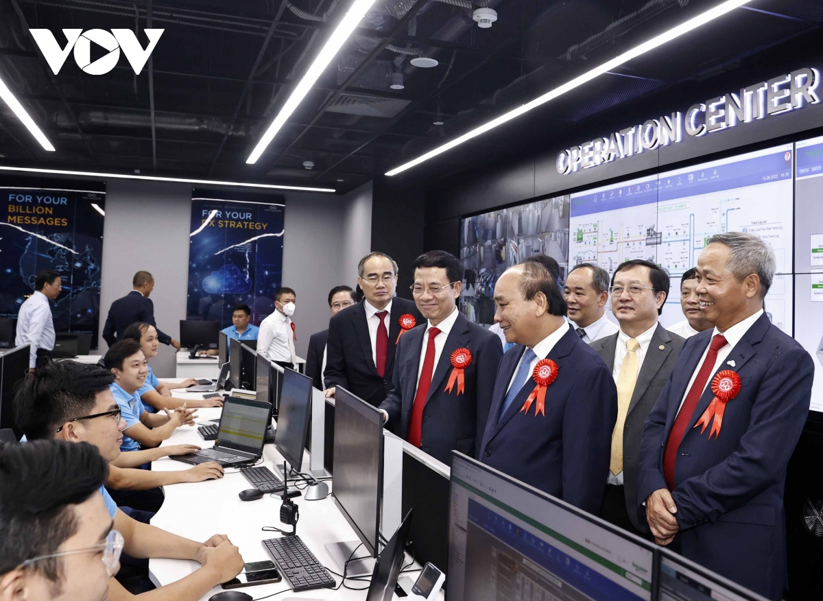 Chủ tịch nước Nguyễn Xuân Phúc, lãnh đạo một số bộ, ngành thăm Trung tâm dữ liệu CMC Data Center Tân Thuận