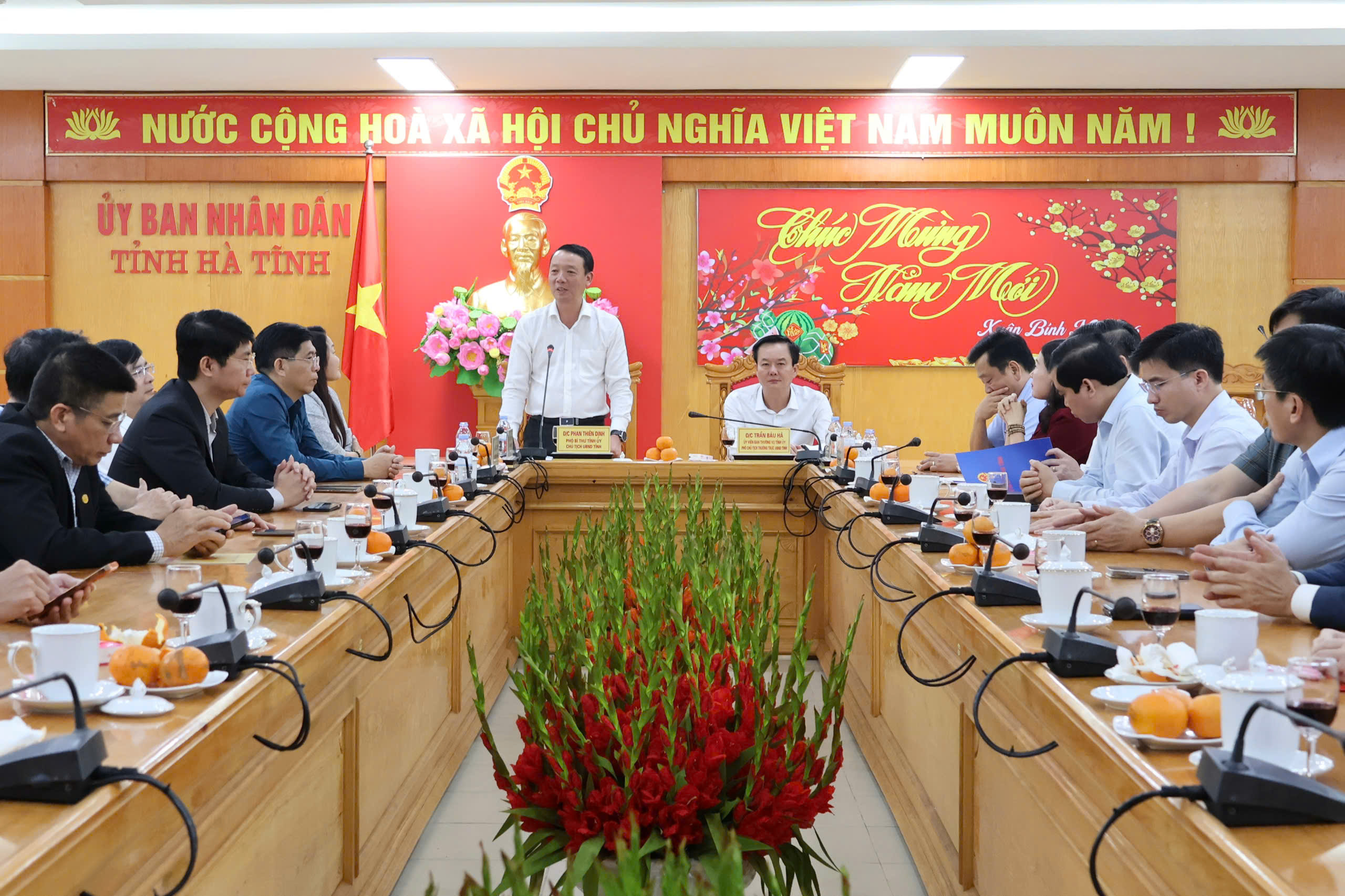Đồng chí Phan Thiên Định, Phó Bí thư Tỉnh ủy, Chủ tịch UBND tỉnh, phát biểu tại buổi gặp mặt.