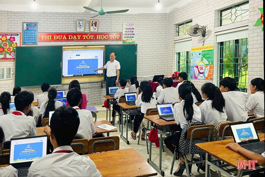 Cùng với việc chuyển đổi số trong công tác quản lý điều hành, thời gian qua, việc áp dụng chuyển đổi số được ngành GD&ĐT triển khai sâu rộng trong các hoạt động giáo dục. Để nâng cao chất lượng giảng dạy, thực hiện có hiệu quả “Chương trình Giáo dục phổ thông năm 2018”, bằng nhiều hình thức huy động nguồn lực, các cơ sở giáo dục trên địa bàn Hà Tĩnh đã trang bị khá đầy đủ cơ sở vật chất để ứng dụng CNTT vào giảng dạy. Theo đó, hầu hết các lớp học đều được trang bị smart tivi có kết nối internet, tạo điều kiện cho giáo viên khai thác các phần mềm, học liệu điện tử vào bài giảng.