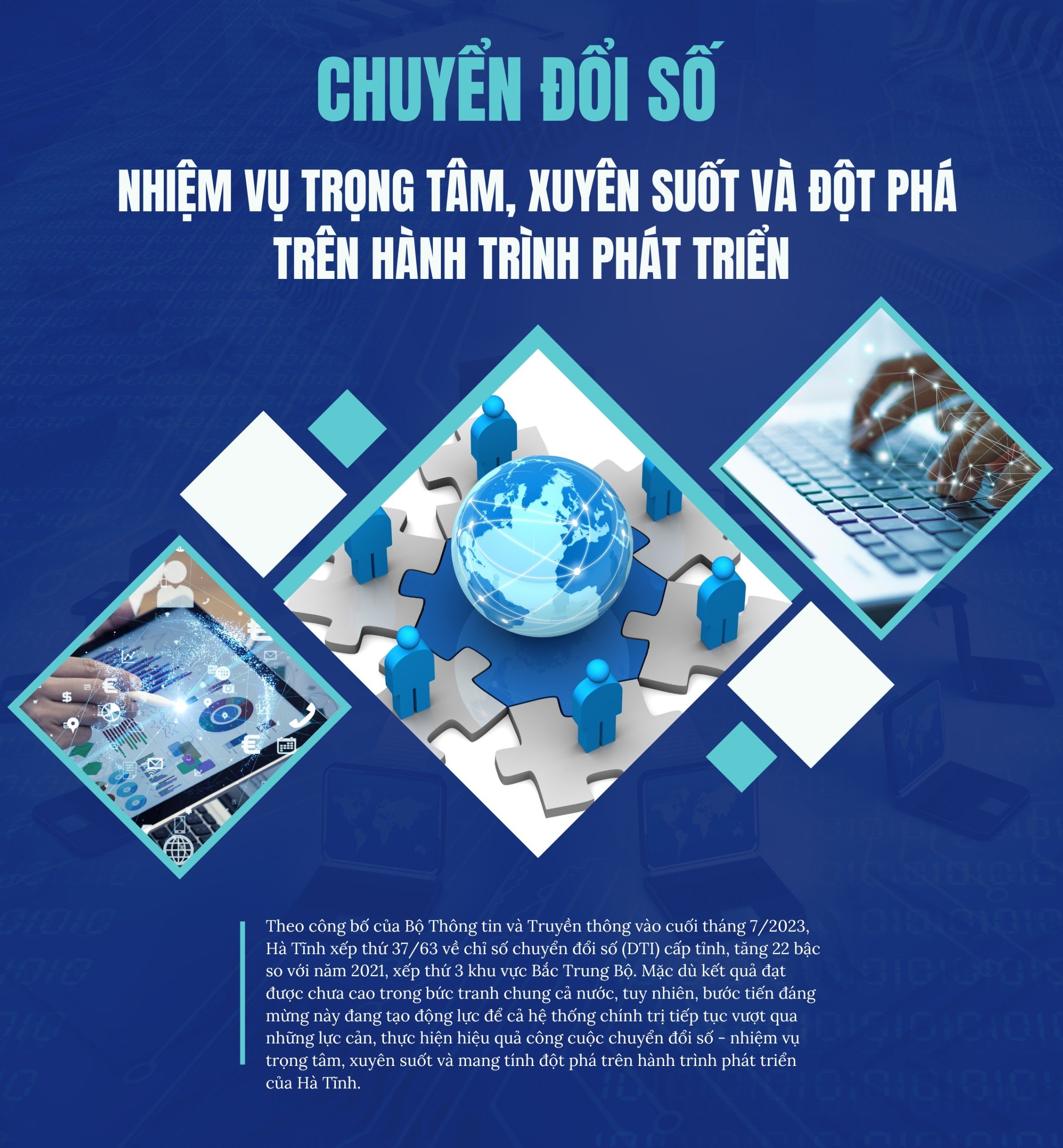 Tạo nền tảng thúc đẩy quá trình cải cách hành chính (CCHC) nói chung, chuyển đổi số (CĐS) nói riêng, Hà Tĩnh đã nâng cấp hoàn thiện hạ tầng kỹ thuật đảm bảo ứng dụng công nghệ thông tin trong nội bộ các cơ quan Nhà nước, phát triển các ứng dụng, dịch vụ tiện ích số, tăng cường nguồn nhân lực, hướng tới xây dựng nền hành chính hiện đại, chuyên nghiệp, hoạt động hiệu lực, hiệu quả.