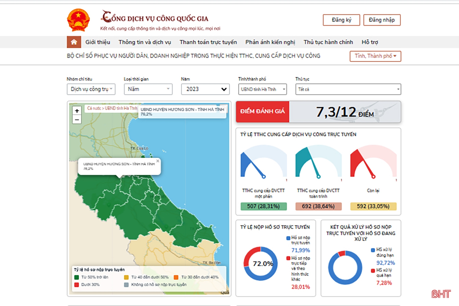 Đến nay, Hà Tĩnh đã có 500 TTHC ở 3 cấp được triển khai dịch vụ công trực tuyến toàn trình và 1.022 TTHC được triển khai dịch vụ công trực tuyến một phần. Hạ tầng đồng bộ cùng với công tác tuyên truyền, vận động có hiệu quả nên đến nay, tỷ lệ hồ sơ nộp trực tuyến toàn tỉnh là 72%, trong đó, hồ sơ trực tuyến toàn trình đạt 74,02%.
