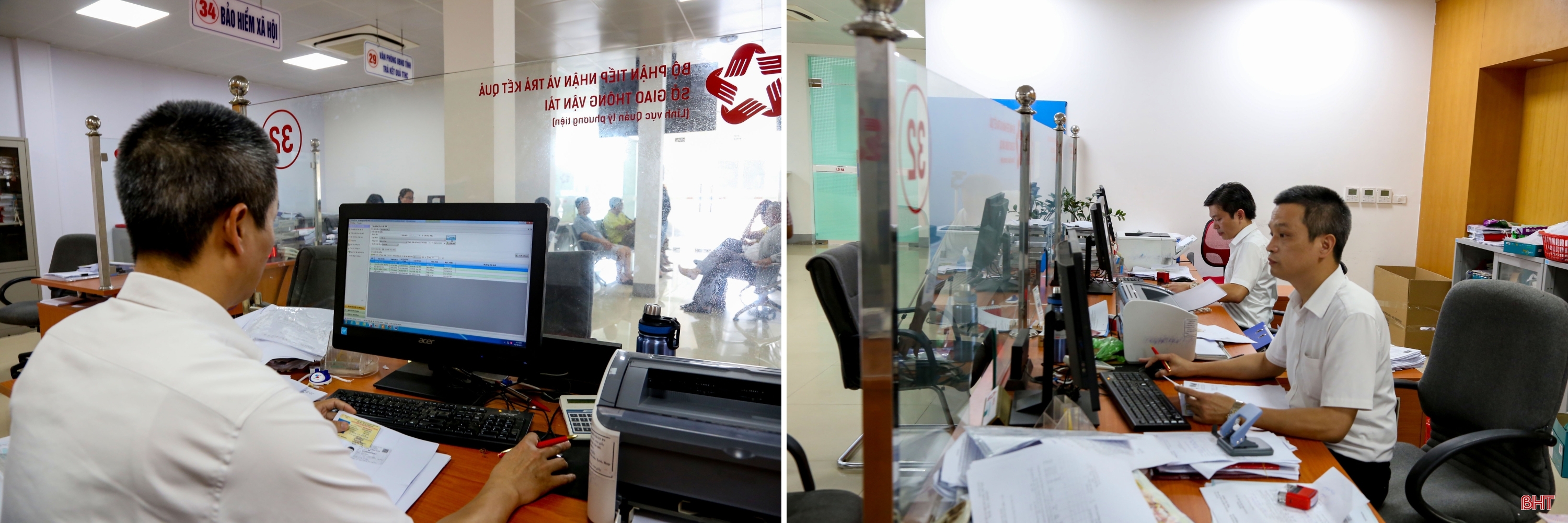 Cán bộ Sở GTVT thực hiện cấp đổi giấy phép lái xe trực tuyến cho người dân.
