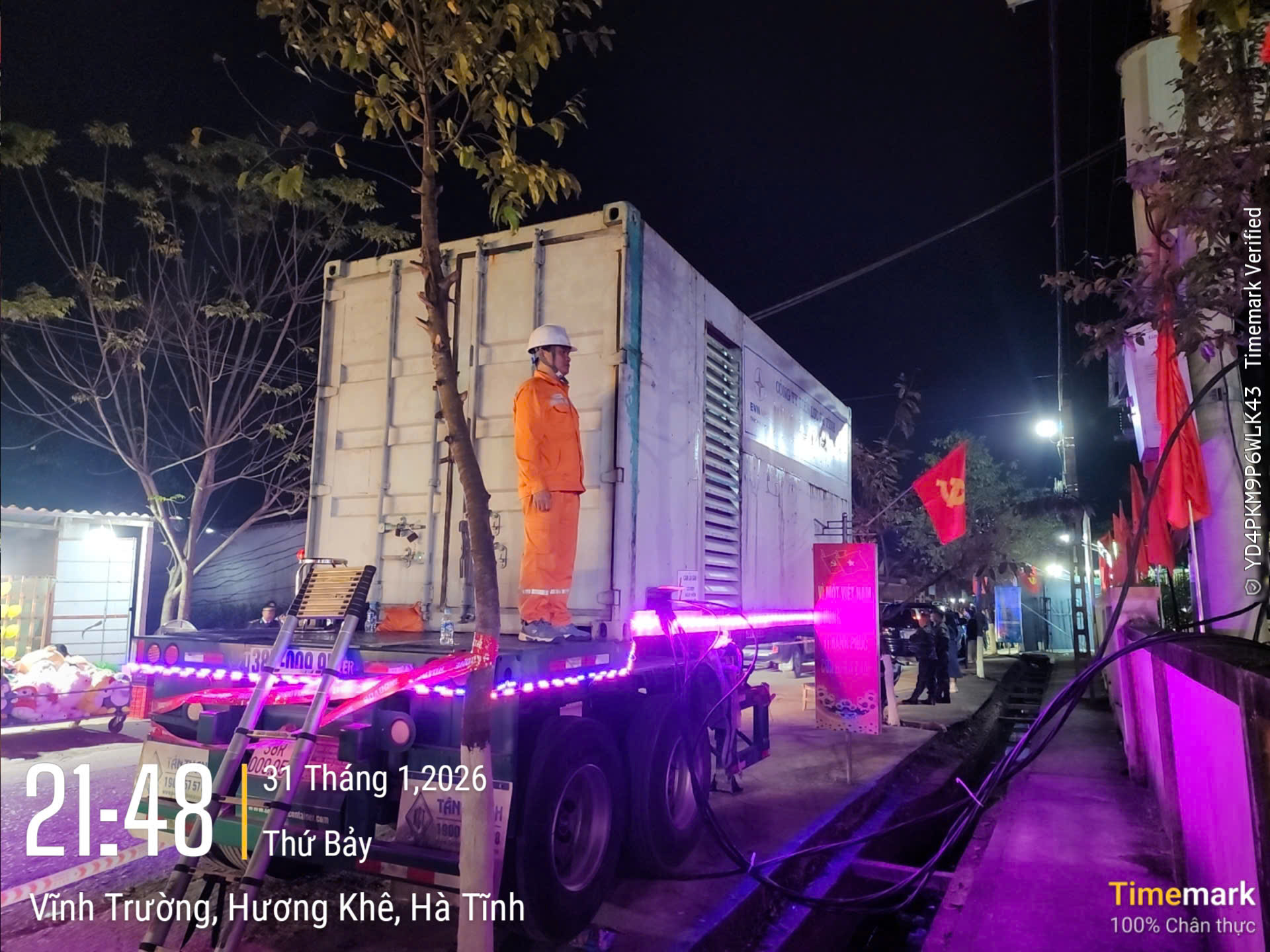 Xác định tầm quan trọng của sự kiện, CTĐL Hà Tĩnh đã xây dựng phương án cấp điện chi tiết từ sớm. Đội Quản lý Điện lực khu vực Hương Khê trực tiếp phụ trách địa bàn xã Hương Xuân đã tiến hành kiểm tra tổng thể các tuyến đường dây, trạm biến áp liên quan; kịp thời xử lý các khiếm khuyết có nguy cơ ảnh hưởng đến vận hành. Đồng thời, đơn vị phối hợp kéo điện 3 pha đến khu vực sân khấu trung tâm, bảo đảm yêu cầu kỹ thuật cho hệ thống âm thanh, ánh sáng phục vụ chương trình.