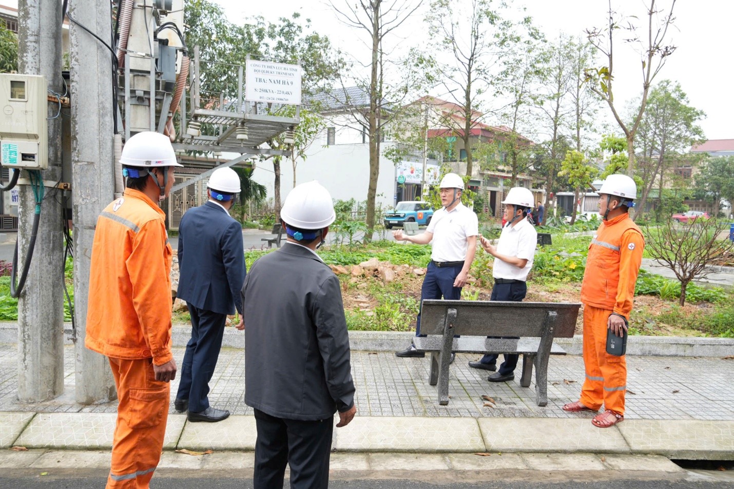 Lãnh đạo CTĐL Hà Tĩnh cùng các phòng chuyên môn kiểm tra công tác bảo đảm cấp điện tại trạm biến áp 110kV Thạch Linh.