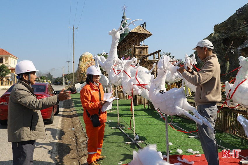 Công ty Điện lực Hà Tĩnh cũng giao các điện lực, đơn vị trực thuộc gửi văn bản cho UBND, Ủy ban MTTQ huyện, xã, các nhà thờ công giáo, các trường học, các thôn trưởng, tổ trưởng tổ dân phố khuyến cáo, tuyên truyền các biện pháp an toàn điện dịp lễ tết. Cùng đó, ngành điện tăng cường tần suất kiểm tra các hang đá, địa điểm trang trí, tập trung đón giáng sinh, cắm cọc, cờ...; trường hợp phát hiện vi phạm hành lang lưới điện, nguy cơ mất an toàn điện, tiến hành xử lý đúng quy định…