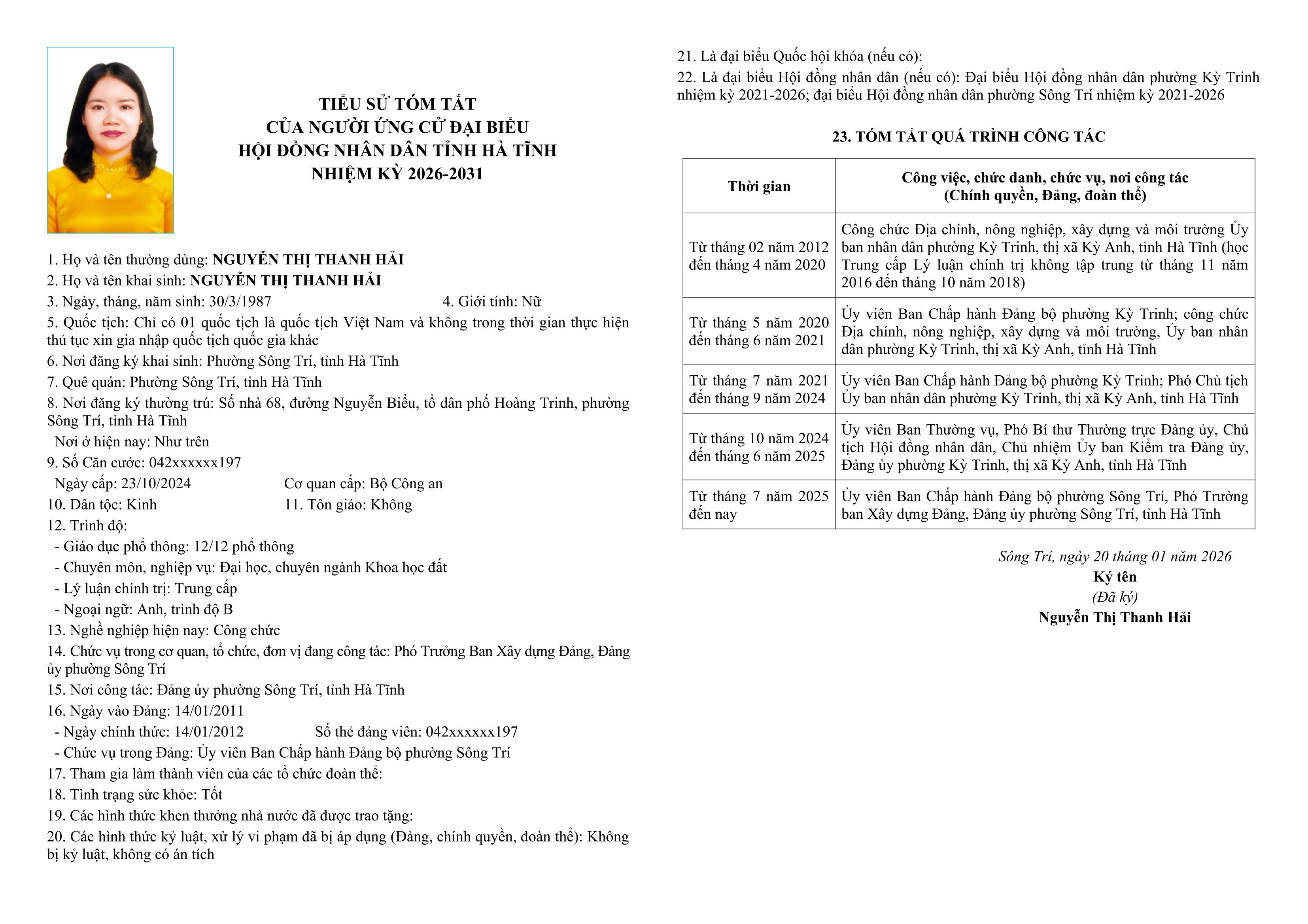 Danh sách chính thức người ứng cử đại biểu HĐND tỉnh khoá XIX tại Hà Tĩnh (Đơn vị bầu cử số 1)