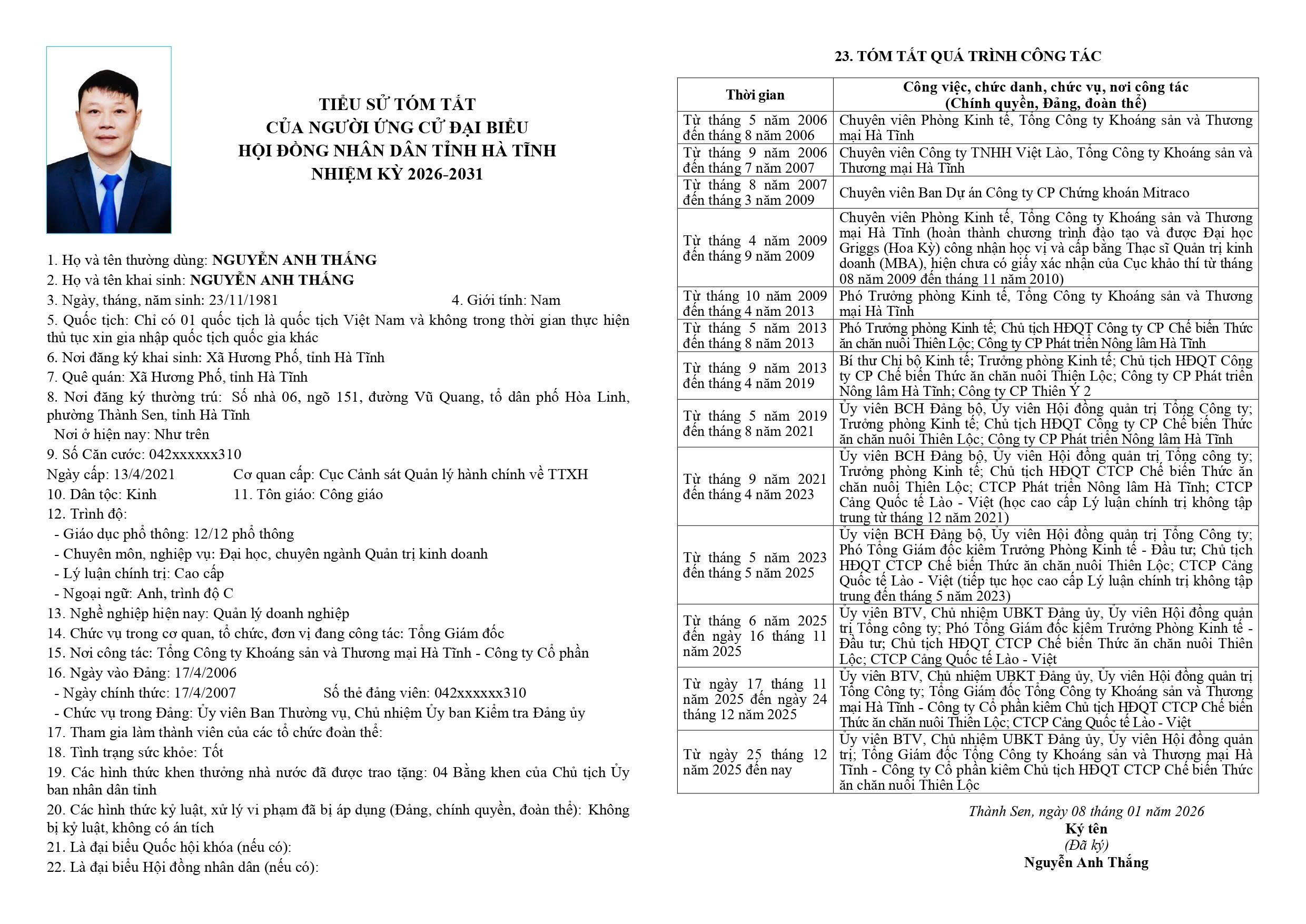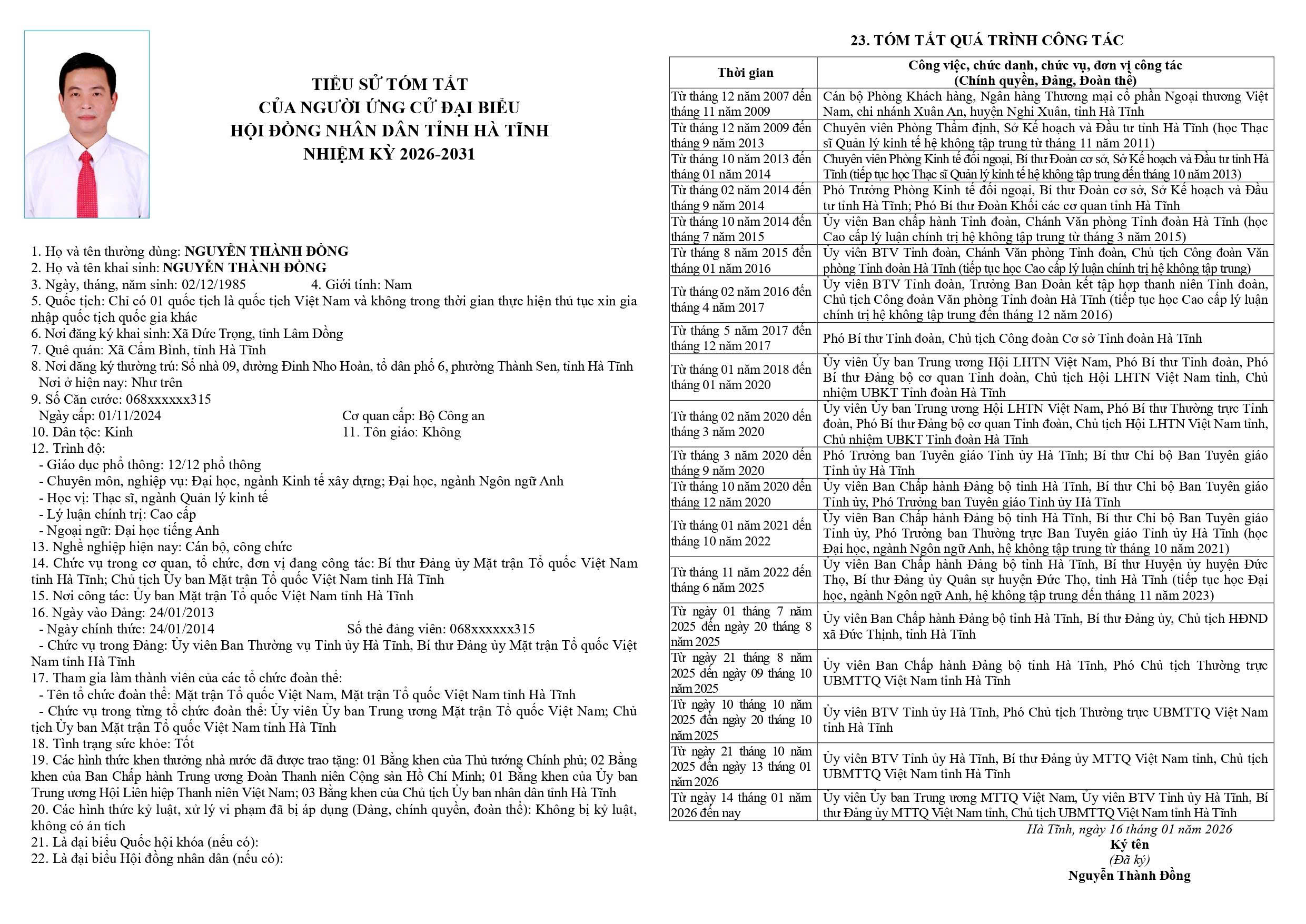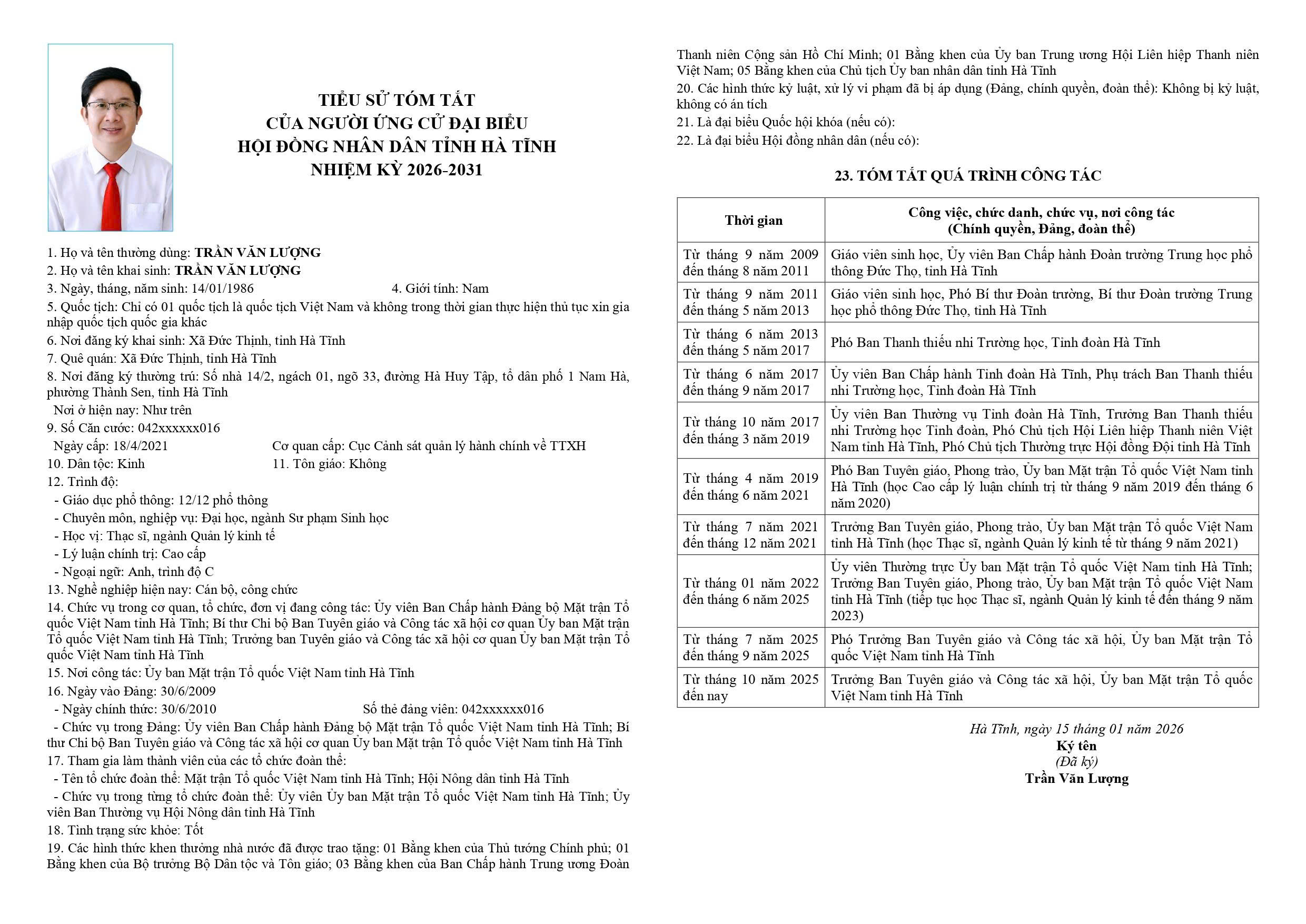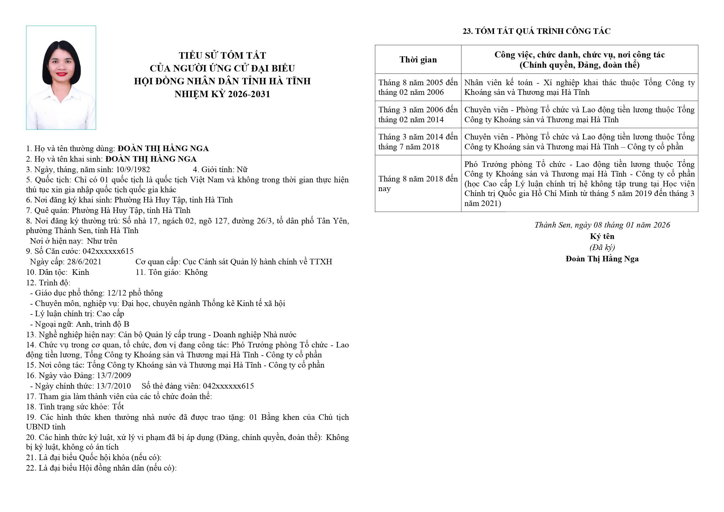Danh sách chính thức người ứng cử đại biểu HĐND tỉnh khoá XIX tại Hà Tĩnh (Đơn vị bầu cử số 8)