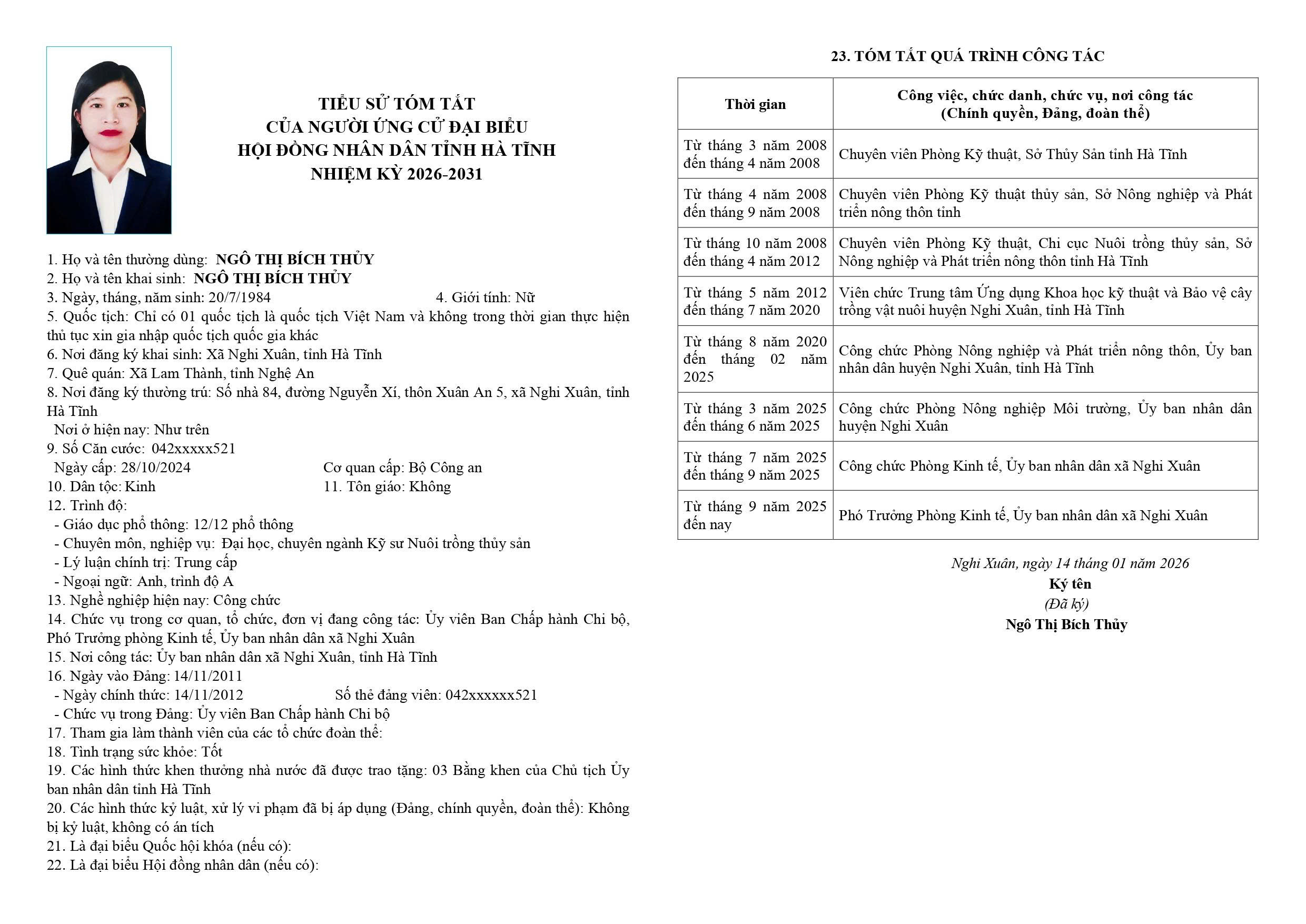 8. Ngô Thị Bích Thuỷ - Phó Trưởng Phòng Kinh tế, Ủy ban nhân dân xã Nghi Xuân